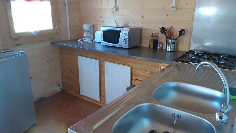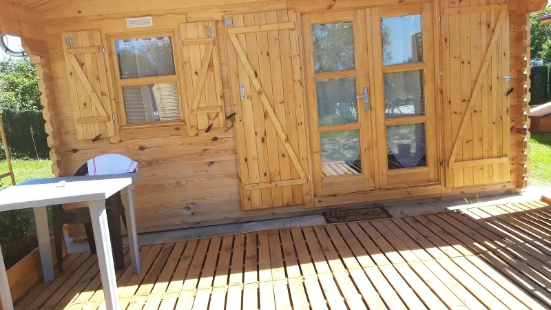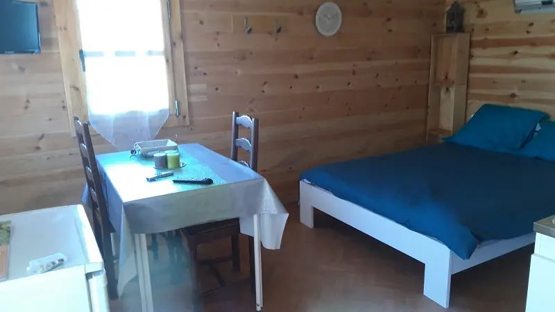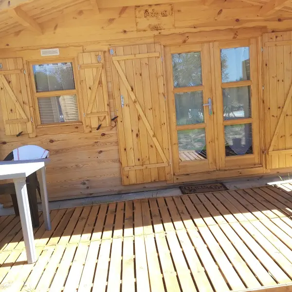 2 Chalets for rent: Green Perigord and Purple Perigord. Fully equipped with terrace. Shared swimming pool. Close to all shops. Wifi. TV. Kitchen. Shower room. Possibility of breakfast on request.