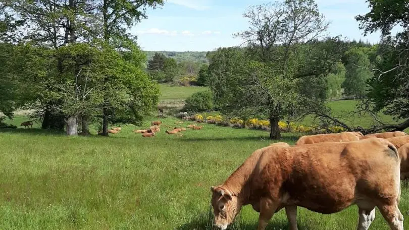 Welcome to L'Hyvernerie, we are delighted to welcome you to our home. Part of a typical Corrézienne farmhouse, it was built by my great-grandfather in 1892, Antoine Mazuel, a cabinetmaker whose initials are engraved above the front door. It's a family home, where I lived with my parents and two brothers until the age of 25. You may have the chance to meet Alice when she visits her animals in the meadow below the house. It's best not to go into the meadow when the cows are there. They don't know you and would be frightened. But you're welcome to gaze at them at your leisure and photograph them - they love to be the stars! We wish you a pleasant, relaxing stay, and hope you enjoy discovering our beautiful Corrèze.