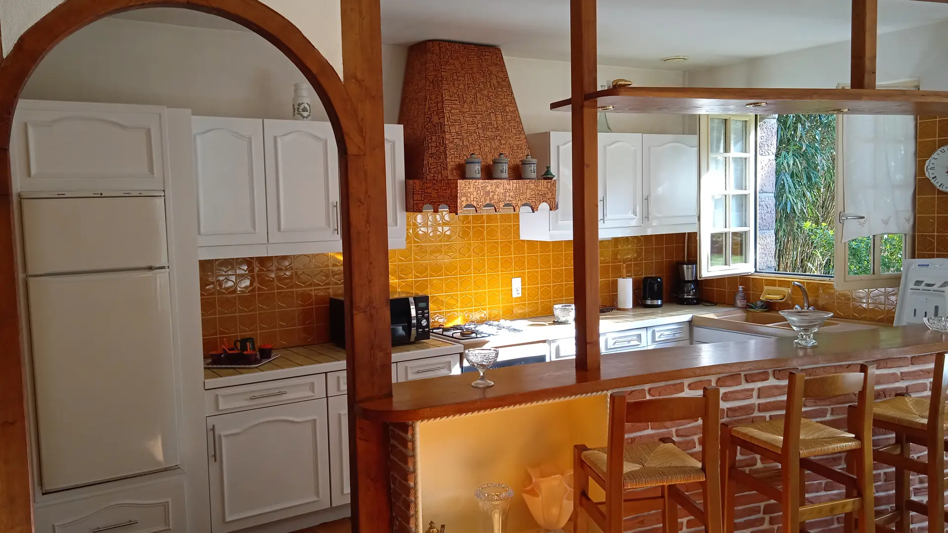 It's a fully restored, fully-equipped former stable in a hamlet. The house is detached, with a covered terrace and a private park shaded and fenced on 3 sides.