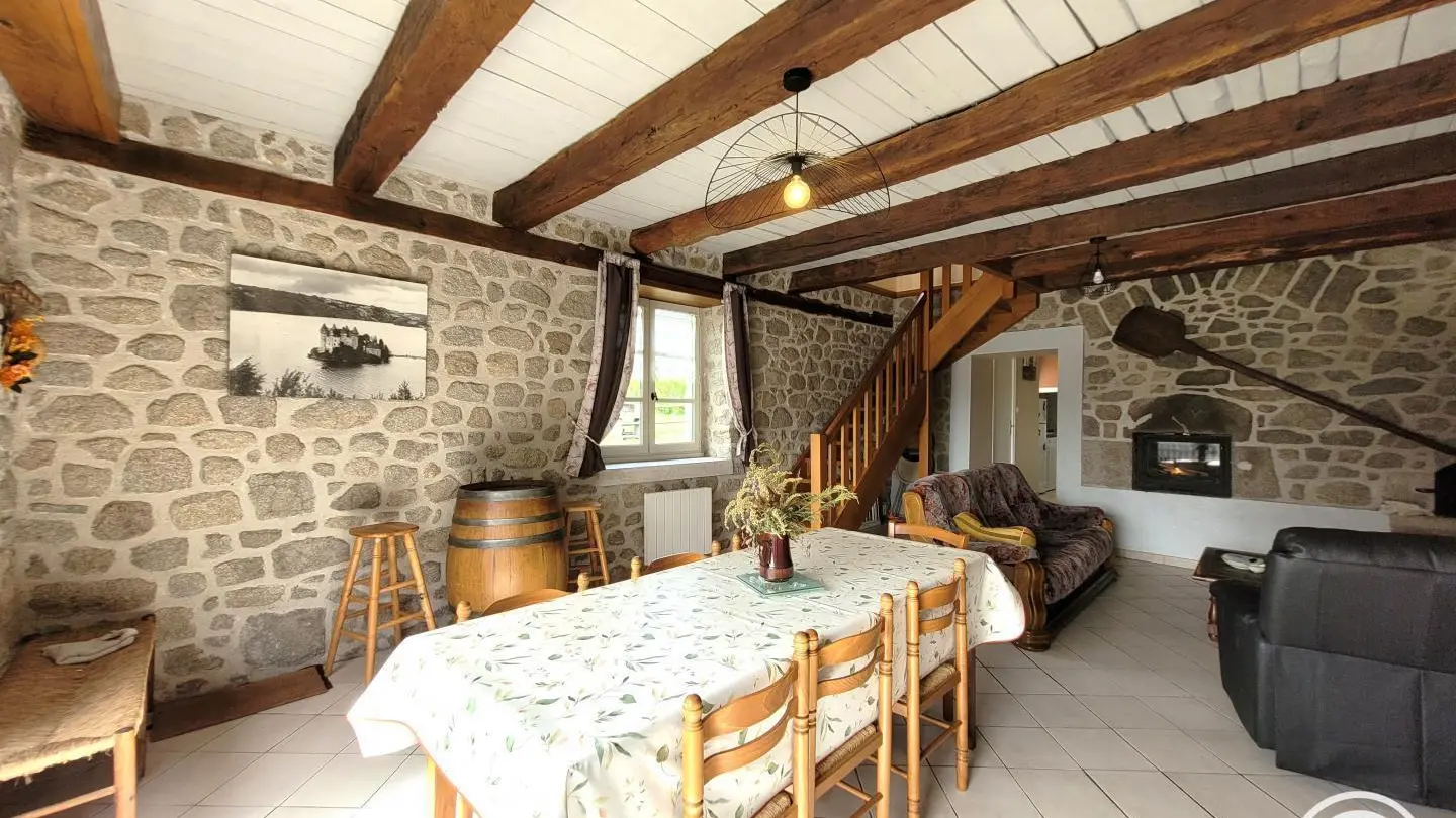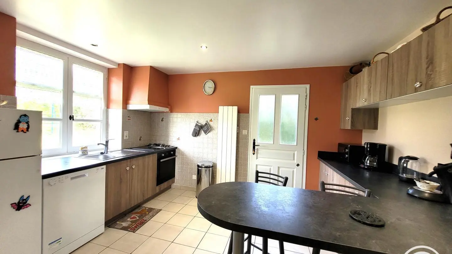 Lodging at the farm. If you like quietness, the countryside, hiking, you will be delighted to spend a stay in this independent house on a closed ground with lawn and terrace. Children's favourite stay with animals and a small family courtyard nearby. Gîte completely renovated, living room, living room, insert.