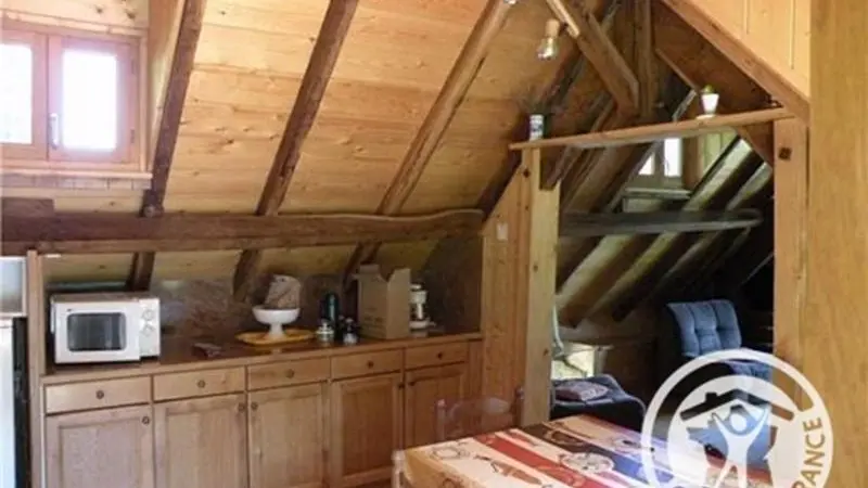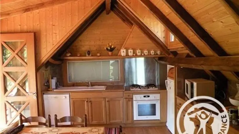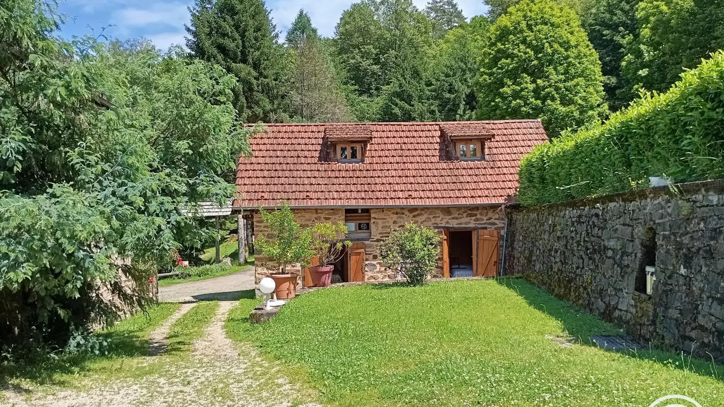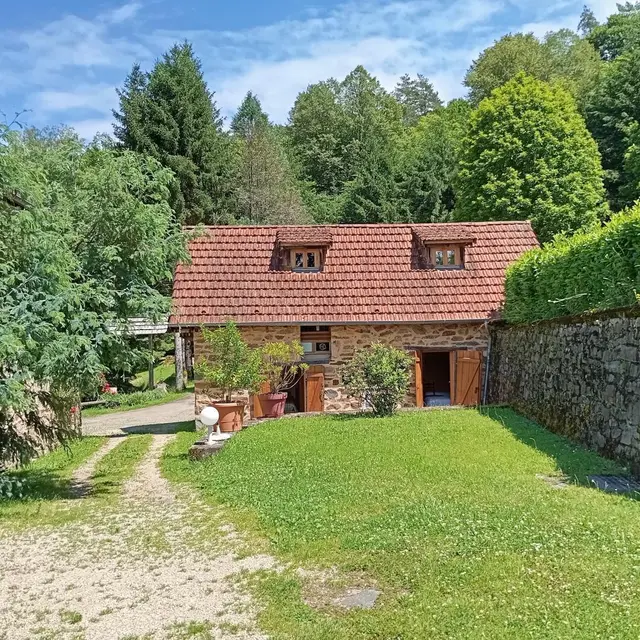 Charming little gîte in the heart of nature on 1000 m² grounds. 2 bedrooms (2 x 90cm beds, 1 x 140cm bed), living room with kitchenette, sitting area, electric heating, grounds. Altitude 410 m.