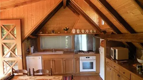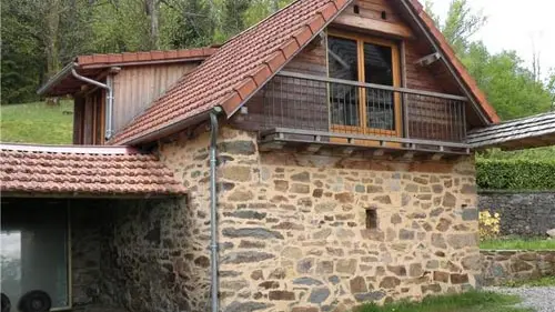 Charming little gîte in the heart of nature on 1000 m² grounds. 2 bedrooms (2 x 90cm beds, 1 x 140cm bed), living room with kitchenette, sitting area, electric heating, grounds. Altitude 410 m.