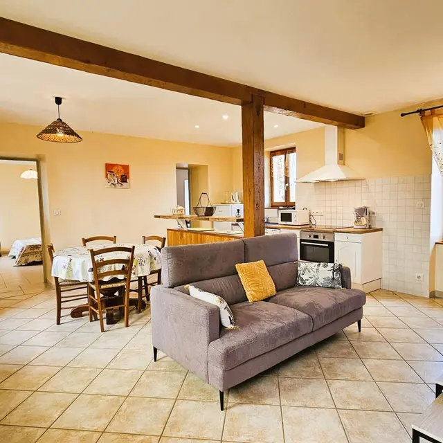 In a quiet, wooded setting, charming renovated house. Lovely view, ideal for relaxing.2 bedrooms (2 double beds), living room with kitchenette, fridge-freezer, microwave, sitting area, relaxation room with sofa bed, electric heating, garage, 2000 m² fully enclosed grounds (fenced + gated) safe for young children and small pets. Wifi access. NON-SMOKING GITE