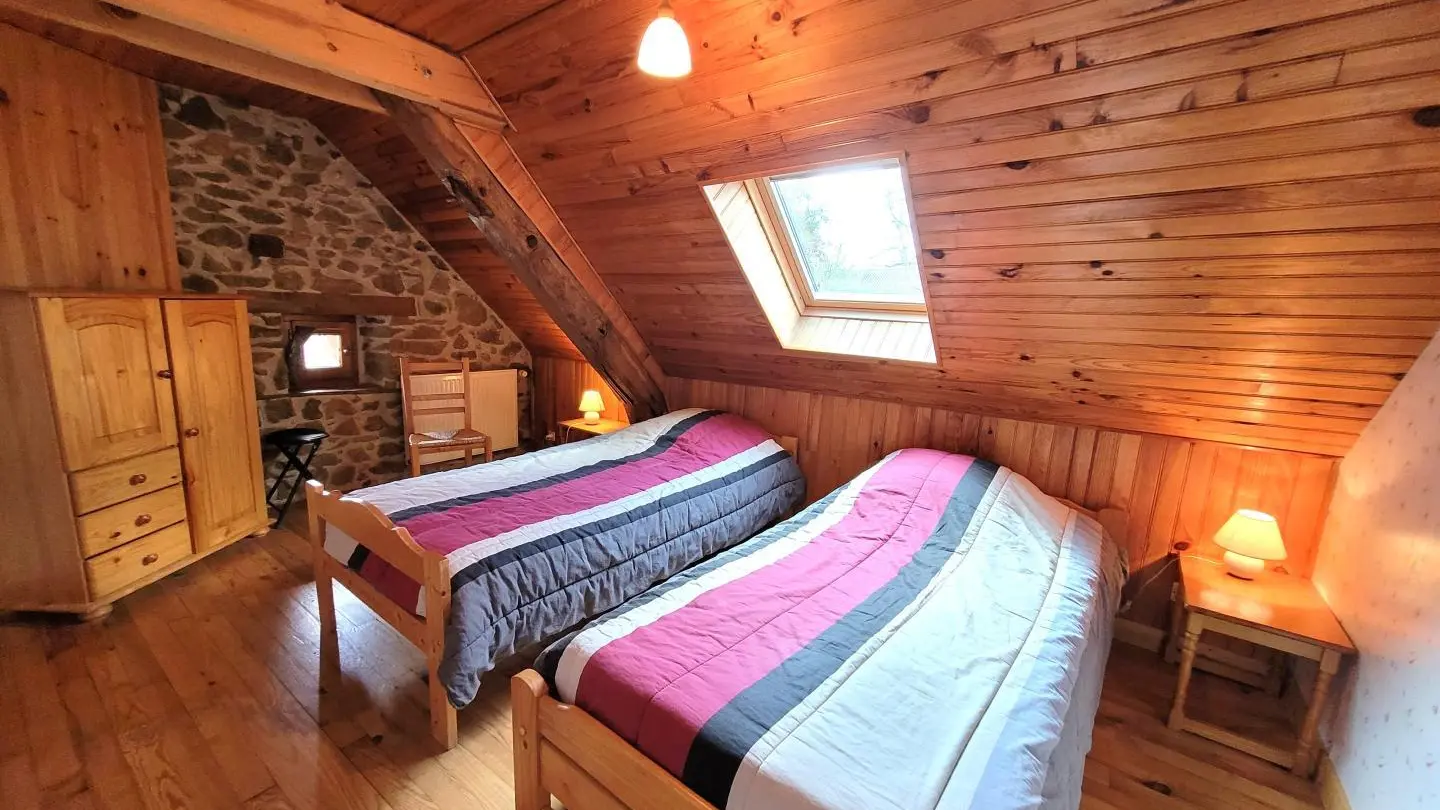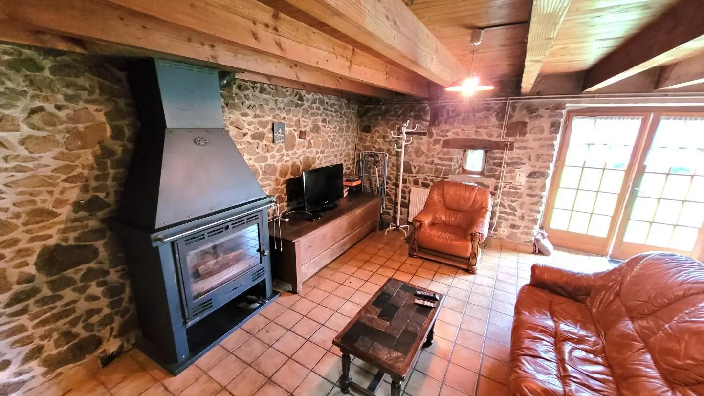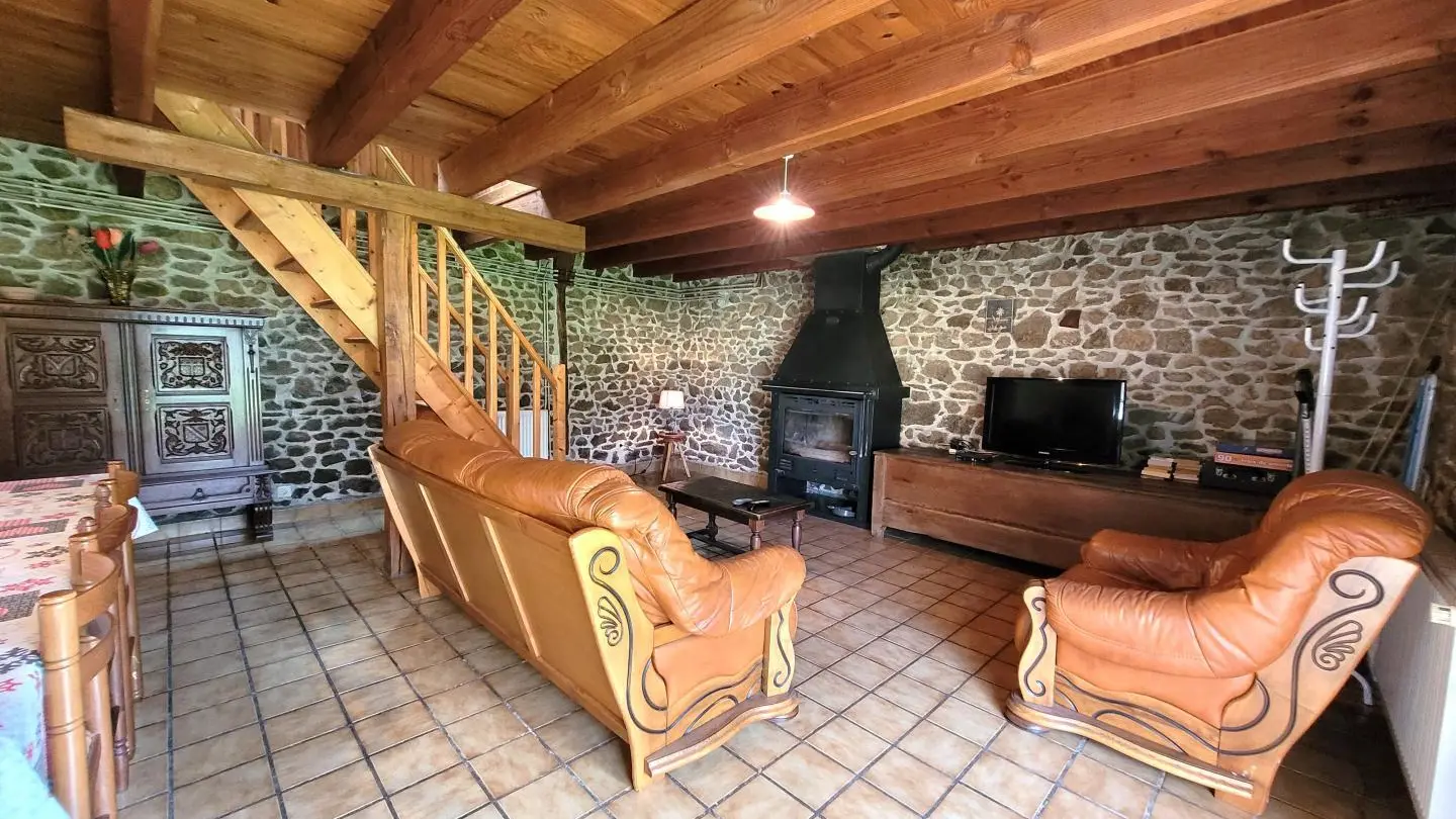 At the end of the road, this old sheepfold, beautifully renovated with exposed stone and wood, will delight you. Situated in the heart of a landscape of woods and wild paths that will guide you to a charming little pond, where you can meet the mushrooms. Enjoy the calm and beauty of the Plateau de Millevaches. 300 m from town, altitude 750 m. 50? per stere of wood in proportion to consumption.