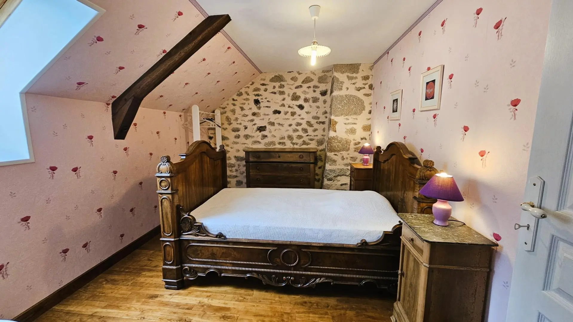 Lovely renovated stone house. Pleasant for its peace and nature. Ideal for walks, serenity and tranquility. 2 bedrooms (1 bed 120, 1 bed 140), kitchen/living room, lounge with additional 120cm-wide bed, electric and wood heating. Heating not included. Sheets and household linen not provided.