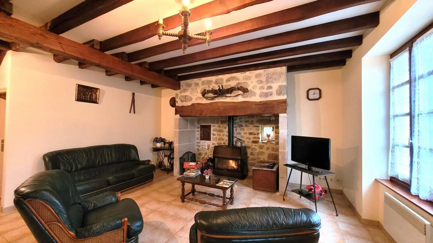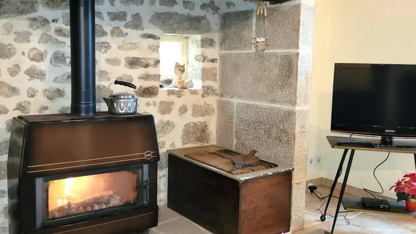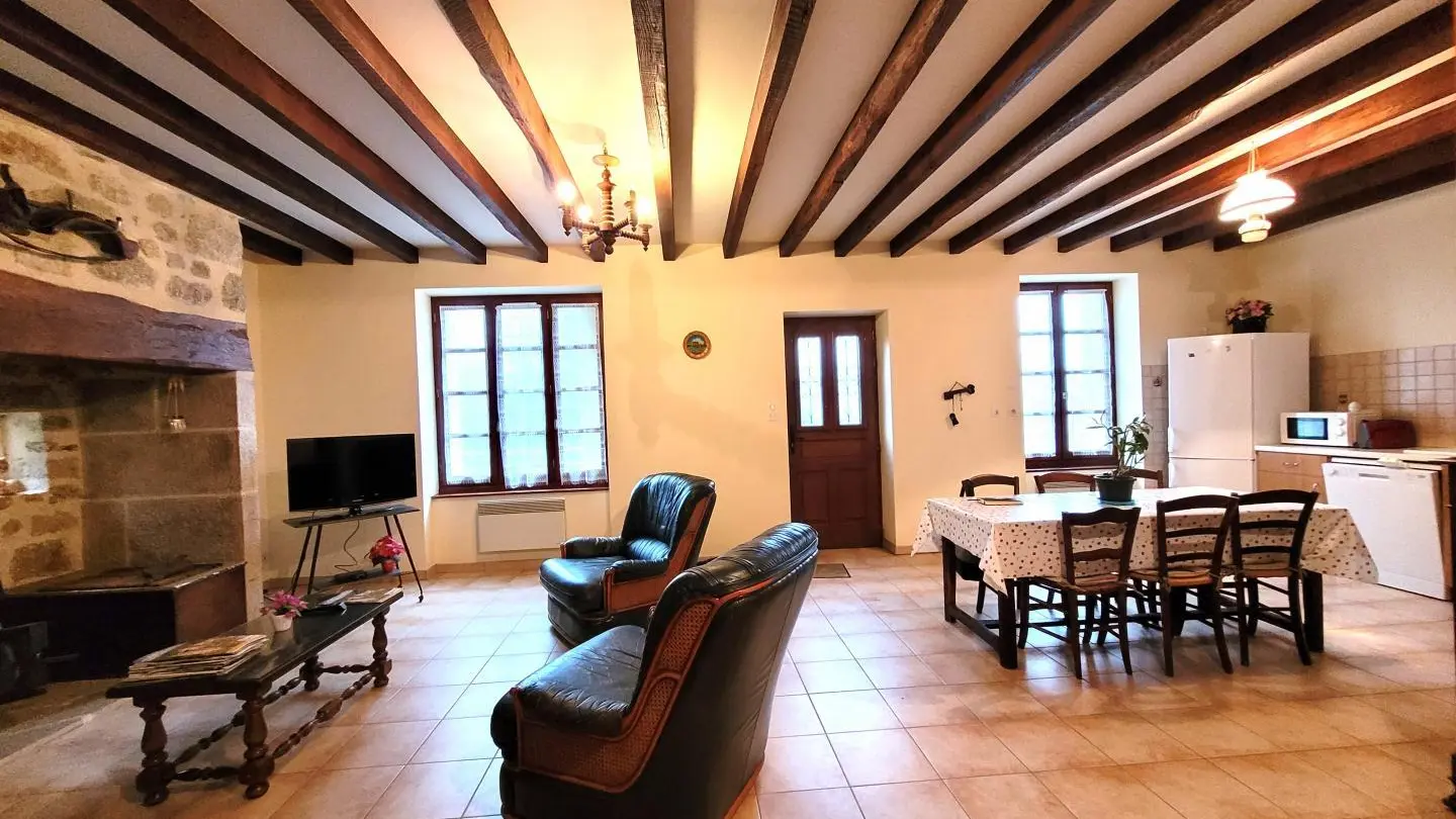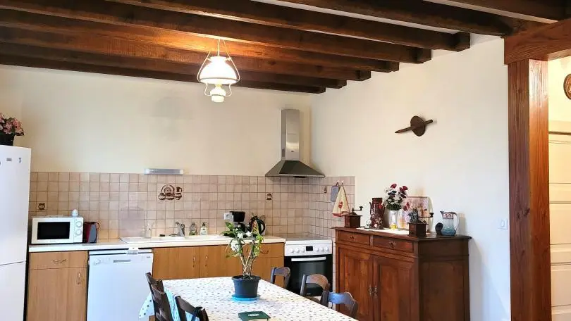 Beautifully renovated traditional house. Quiet, independent. Games room upstairs. 3 bedrooms (2 beds 90, 2 beds 140). Living room with kitchenette, sitting area, wood-burning stove in fireplace, electric heating, shower room, bathroom, 2 WCs. 600 m² grounds.