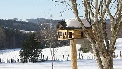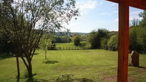 Sandrine and Virgile have designed a small chalet where you can recharge your batteries and forget the hassles of everyday life. From this little hamlet, you can contemplate a superb view of the Millevaches plateau. They've made it feel like home, with a warm, comfortable interior featuring a fully-equipped kitchen, living room, bedroom with double bed, bedroom with twin beds, shower room and toilet. Sheets are provided if required, not forgetting equipment for the little ones. The terrace allows you to take full advantage of the scenery, relax and share your meals in peace and quiet.