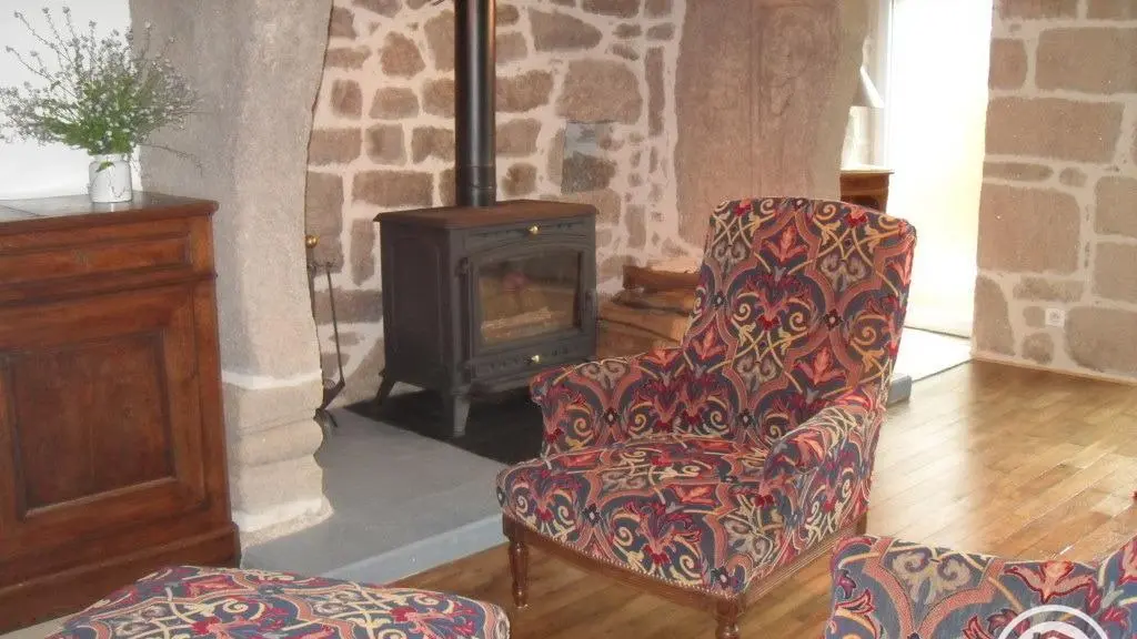 Detached house in the heart of nature in a small hamlet, ideal for lovers of peace and fresh air. Living room with kitchenette, sitting area, electric heating and wood-burning stove. FLOOR: 1 bedroom (1 double bed) and 1 bedroom (2 single beds). Shower room and wc