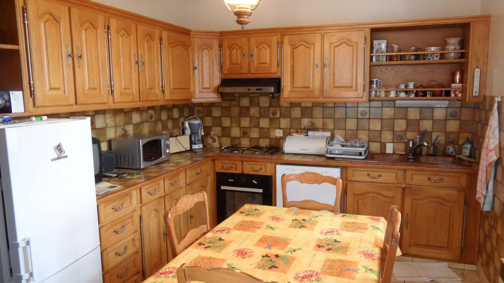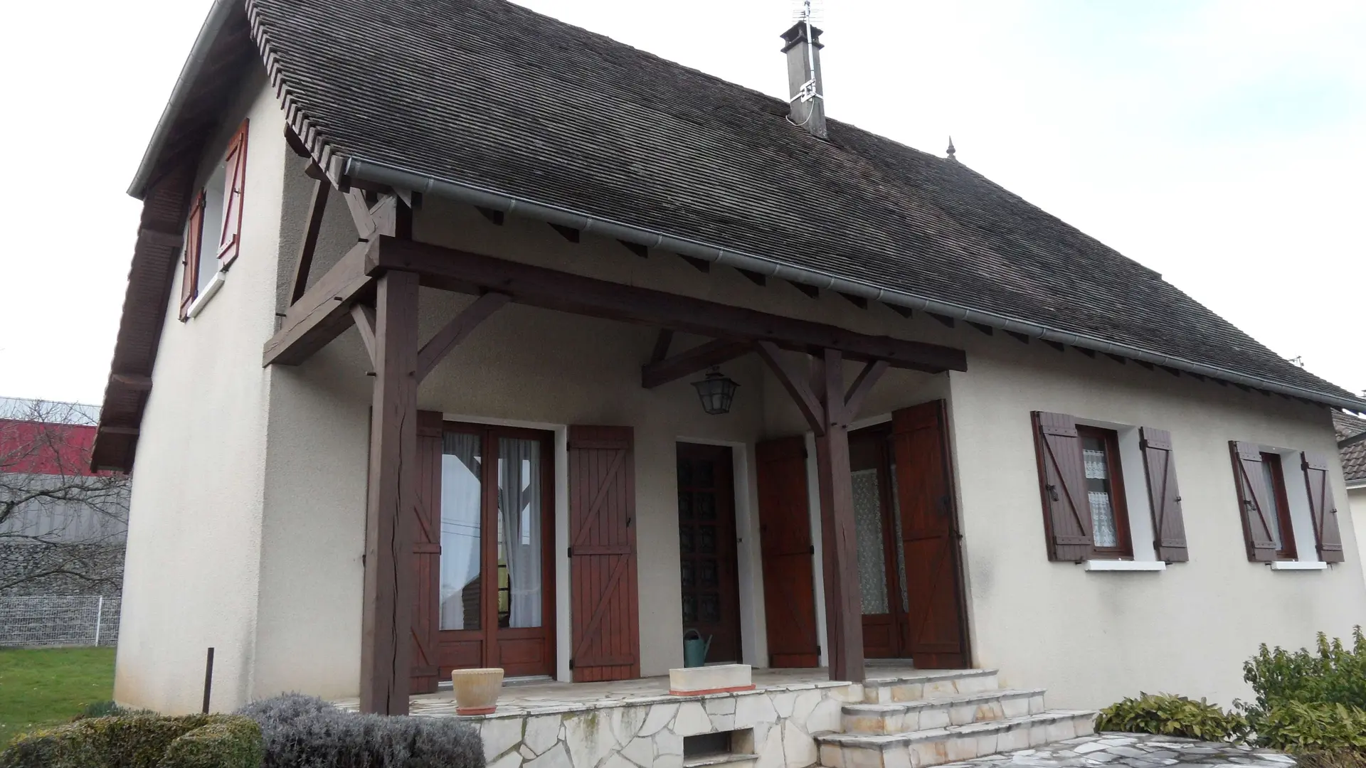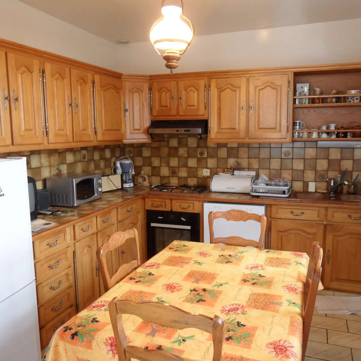 House 300m from the National Stud of Pompadour, close to all shops and activities on foot, enclosed grounds. Basement, garage, washing machine, fridge, freezer, gas cooker, barbecue, garden furniture. Equipped kitchen: fridge, oven, electric hob, dishwasher, microwave, toaster, coffee machine, kettle. Dining room, living room, a sofa, two armchairs, TV. Two bedrooms with double bed, bathroom.