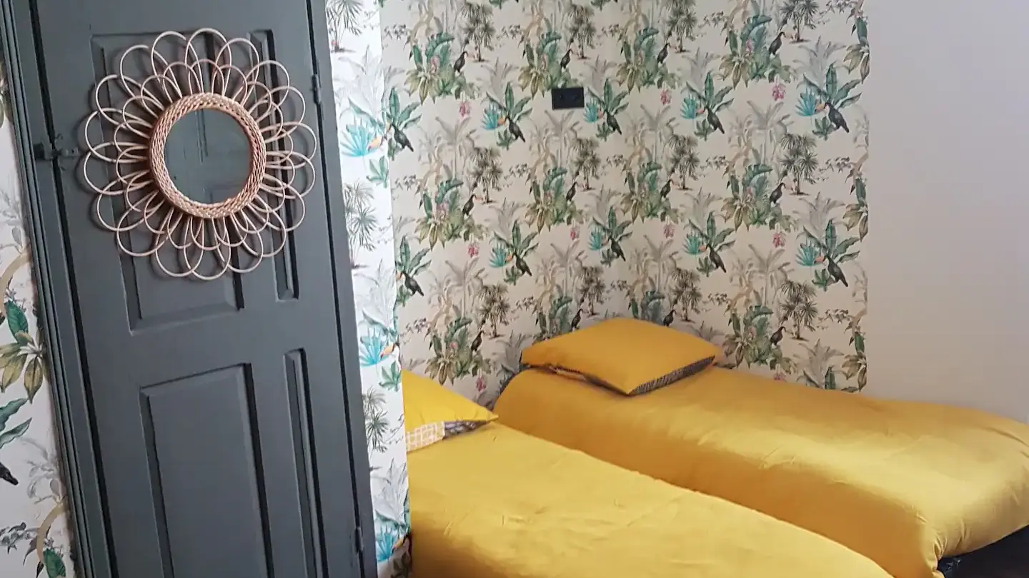 - 1st floor: bedroom with cupboard and 160cm double bed, shower room with WC, bedroom with cupboard and 2 beds that can form 1 140cm bed or 2 80cm single beds.