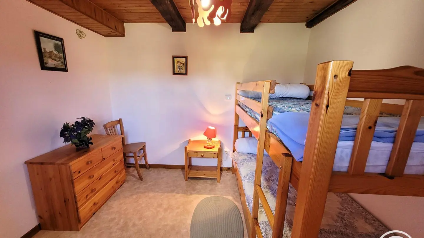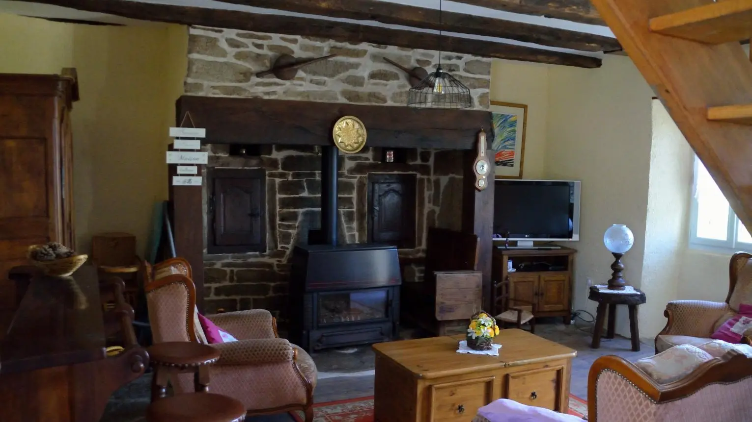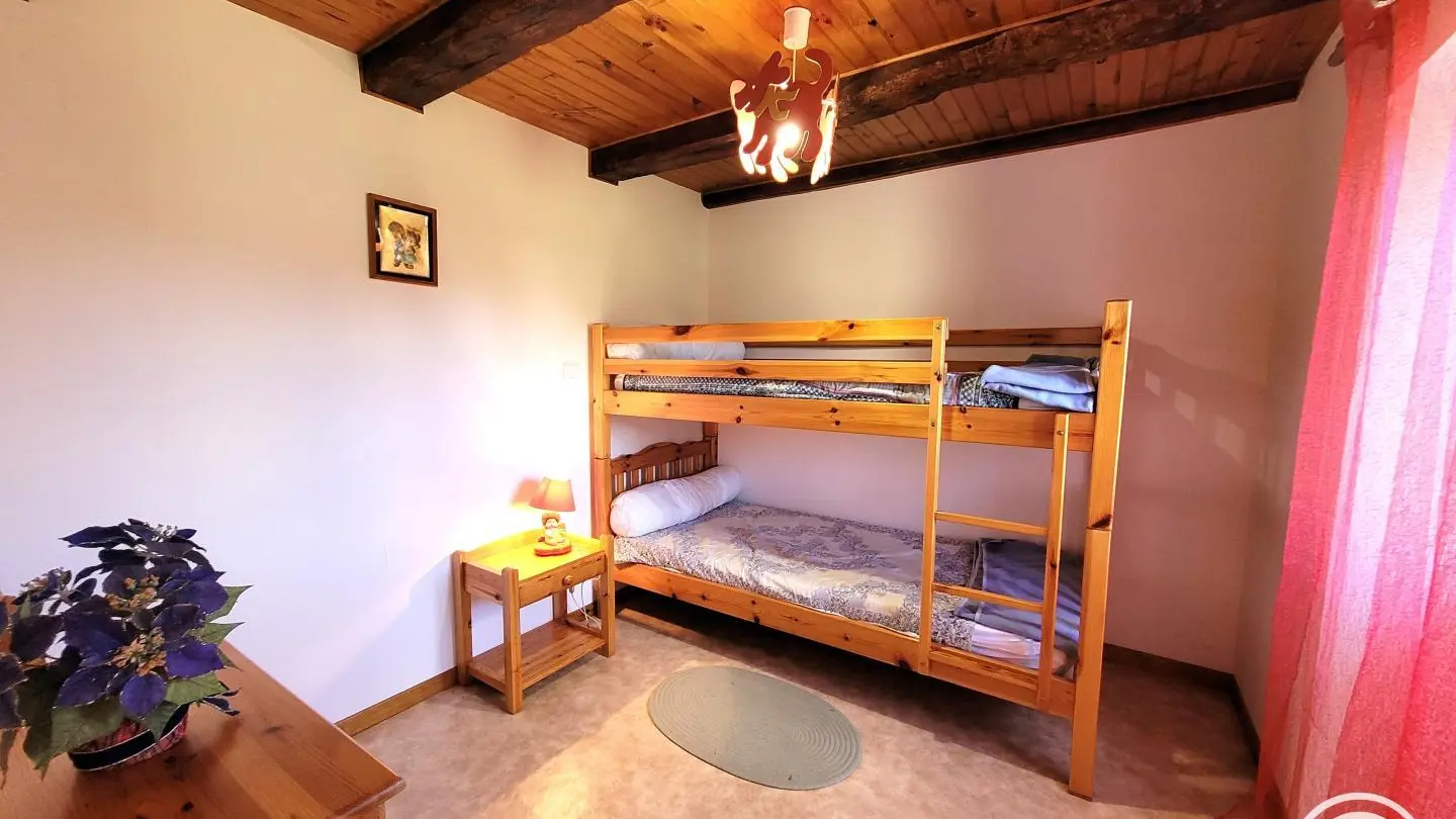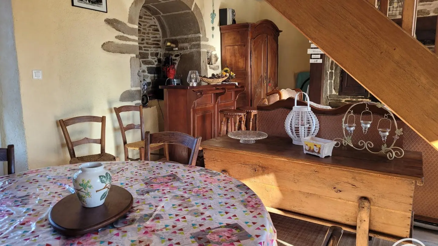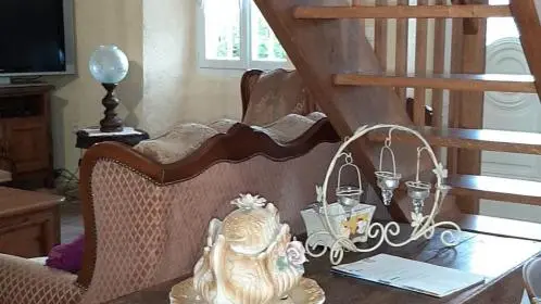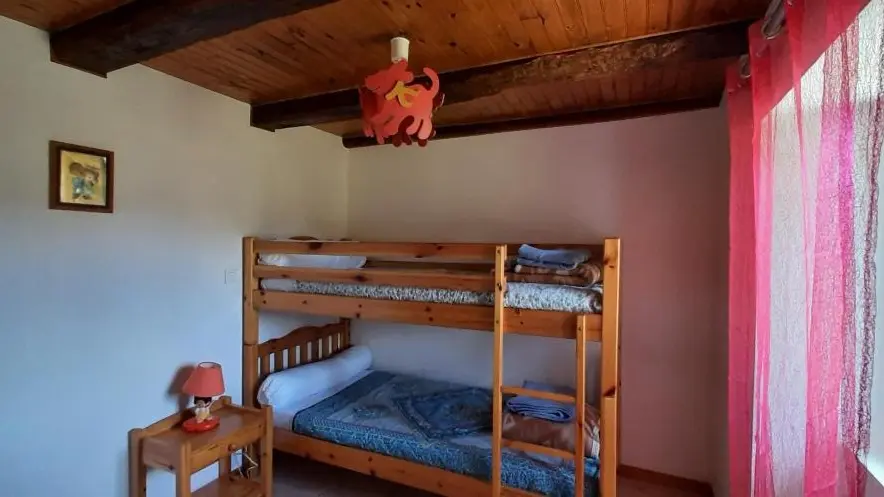 Detached two-century-old house on semi-enclosed grounds, in a quiet village typical of the Correze region. Surrounded by greenery, birdsong, cows and sometimes horses. Large room on first floor with fireplace and wood-burning stove, living room, kitchenette. 3 bedrooms upstairs with 2 double beds, 2 90cm bunk beds, children's bed, shower room and hair-dryer toilet. Walking trail in the middle of the forest, boletus and fishing country. All shops 10 minutes away (Marcillac la Croisille).