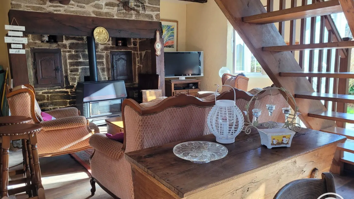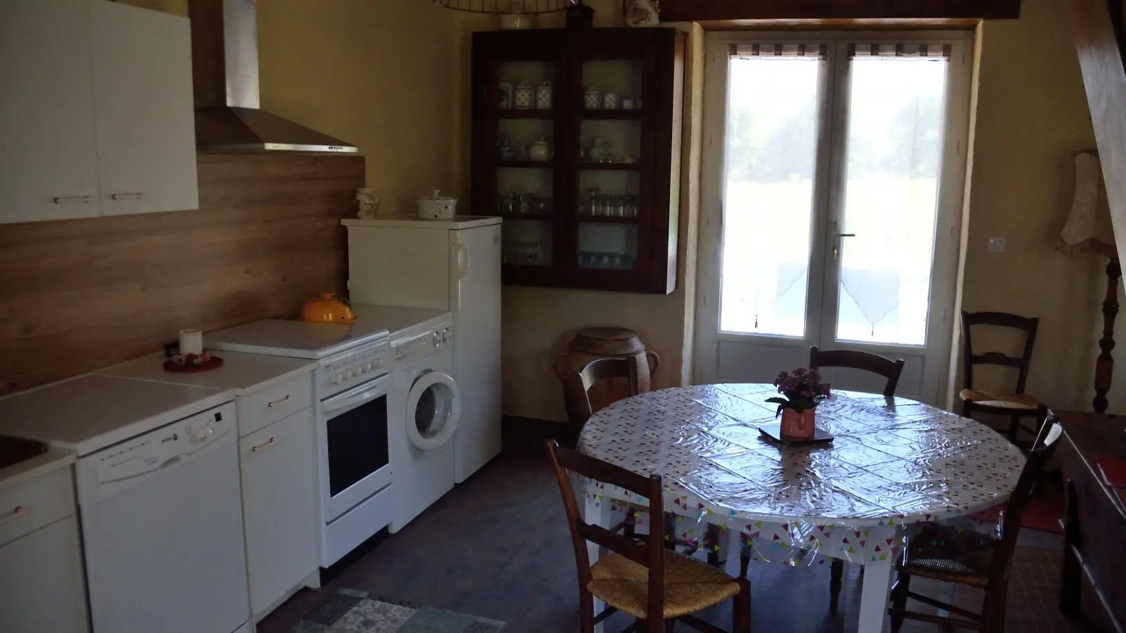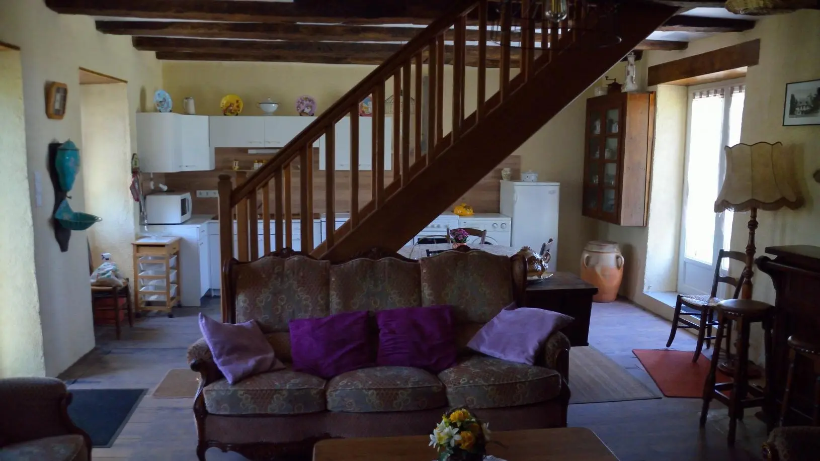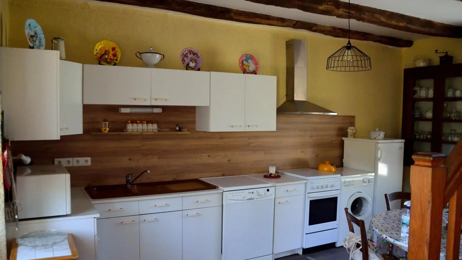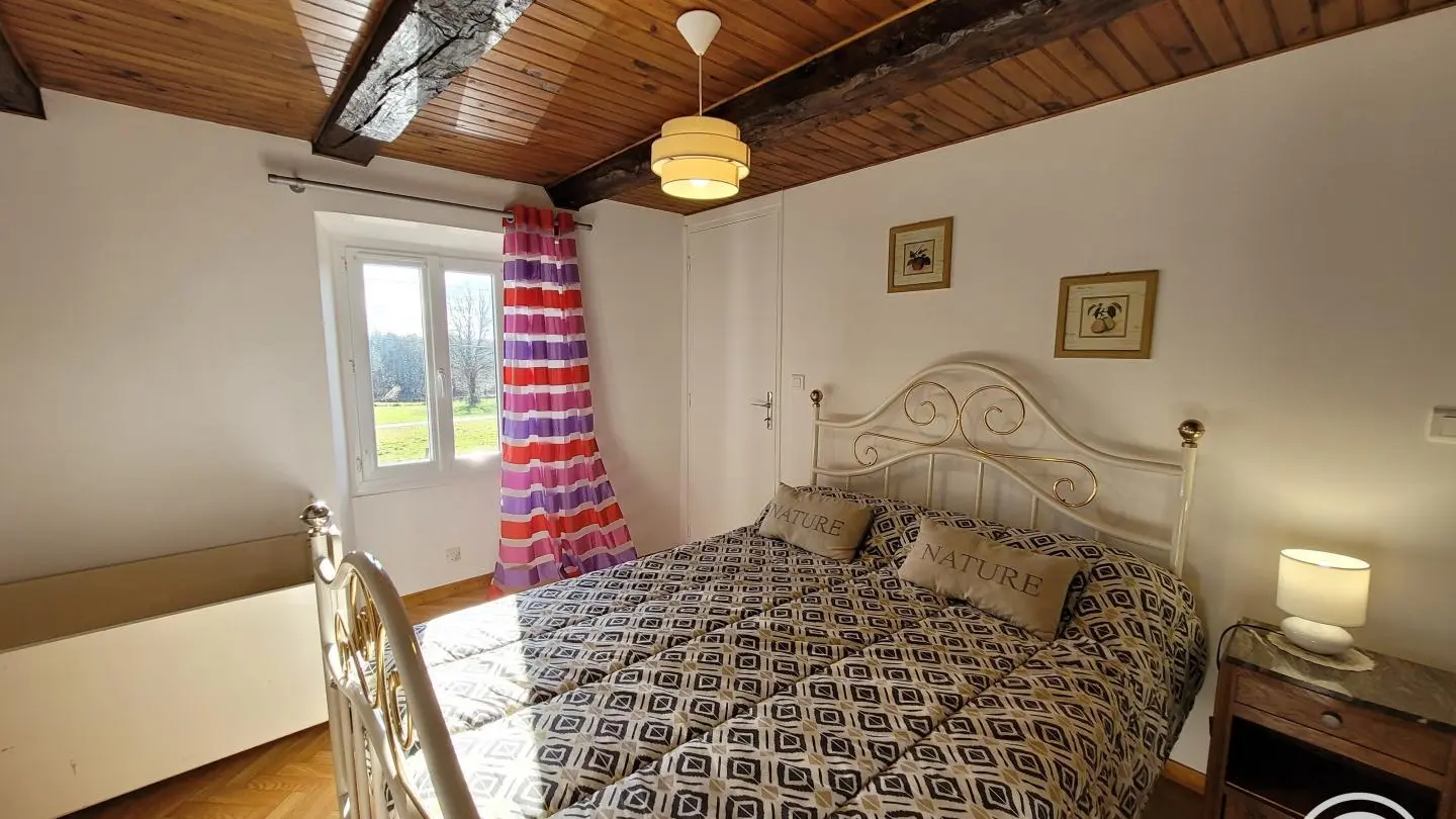Detached two-century-old house on semi-enclosed grounds, in a quiet village typical of the Correze region. Surrounded by greenery, birdsong, cows and sometimes horses. Large room on first floor with fireplace and wood-burning stove, living room, kitchenette. 3 bedrooms upstairs with 2 double beds, 2 90cm bunk beds, children's bed, shower room and hair-dryer toilet. Walking trail in the middle of the forest, boletus and fishing country. All shops 10 minutes away (Marcillac la Croisille).