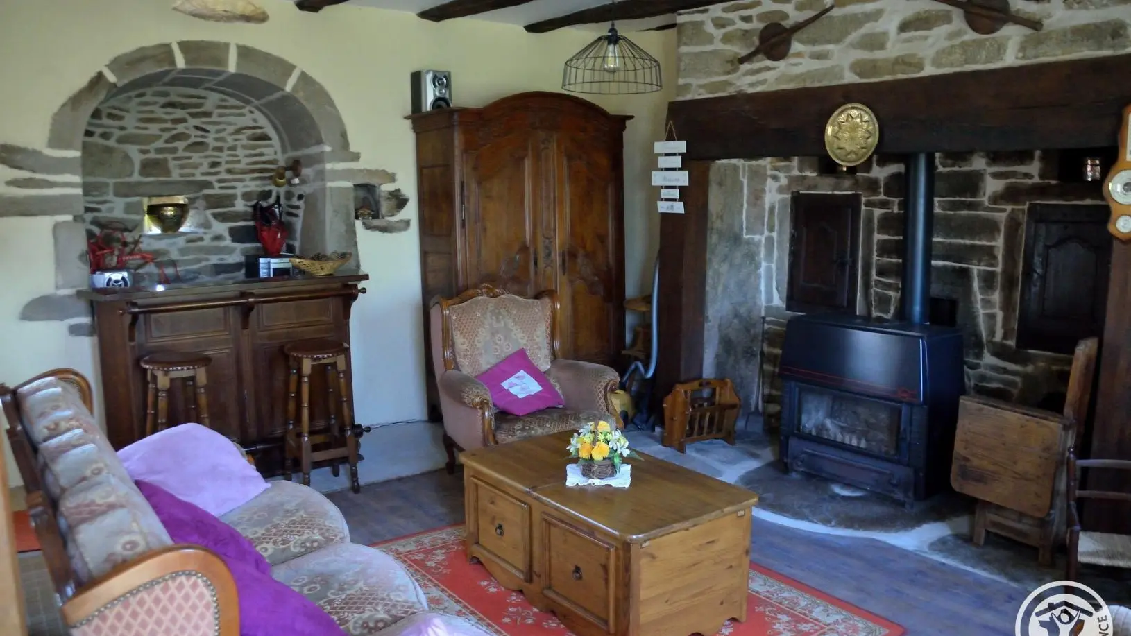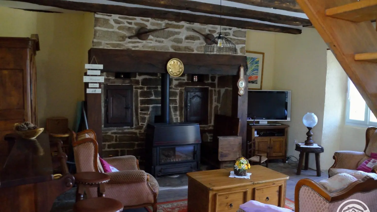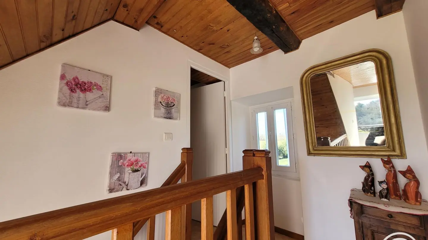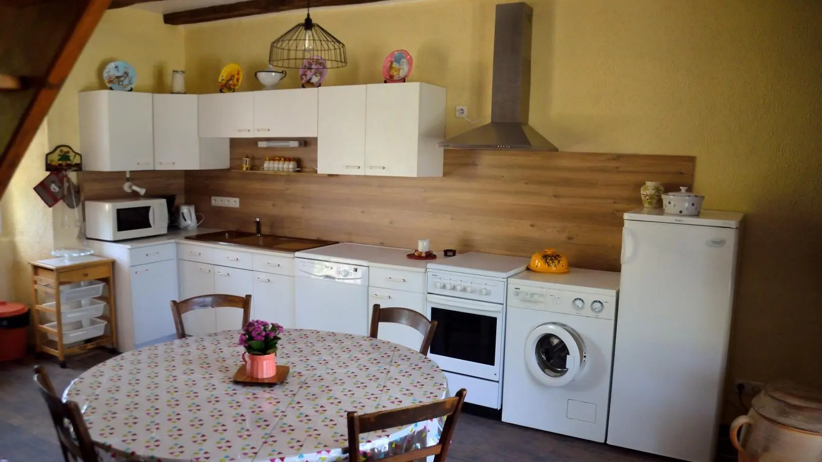 Detached two-century-old house on semi-enclosed grounds, in a quiet village typical of the Correze region. Surrounded by greenery, birdsong, cows and sometimes horses. Large room on first floor with fireplace and wood-burning stove, living room, kitchenette. 3 bedrooms upstairs with 2 double beds, 2 90cm bunk beds, children's bed, shower room and hair-dryer toilet. Walking trail in the middle of the forest, boletus and fishing country. All shops 10 minutes away (Marcillac la Croisille).