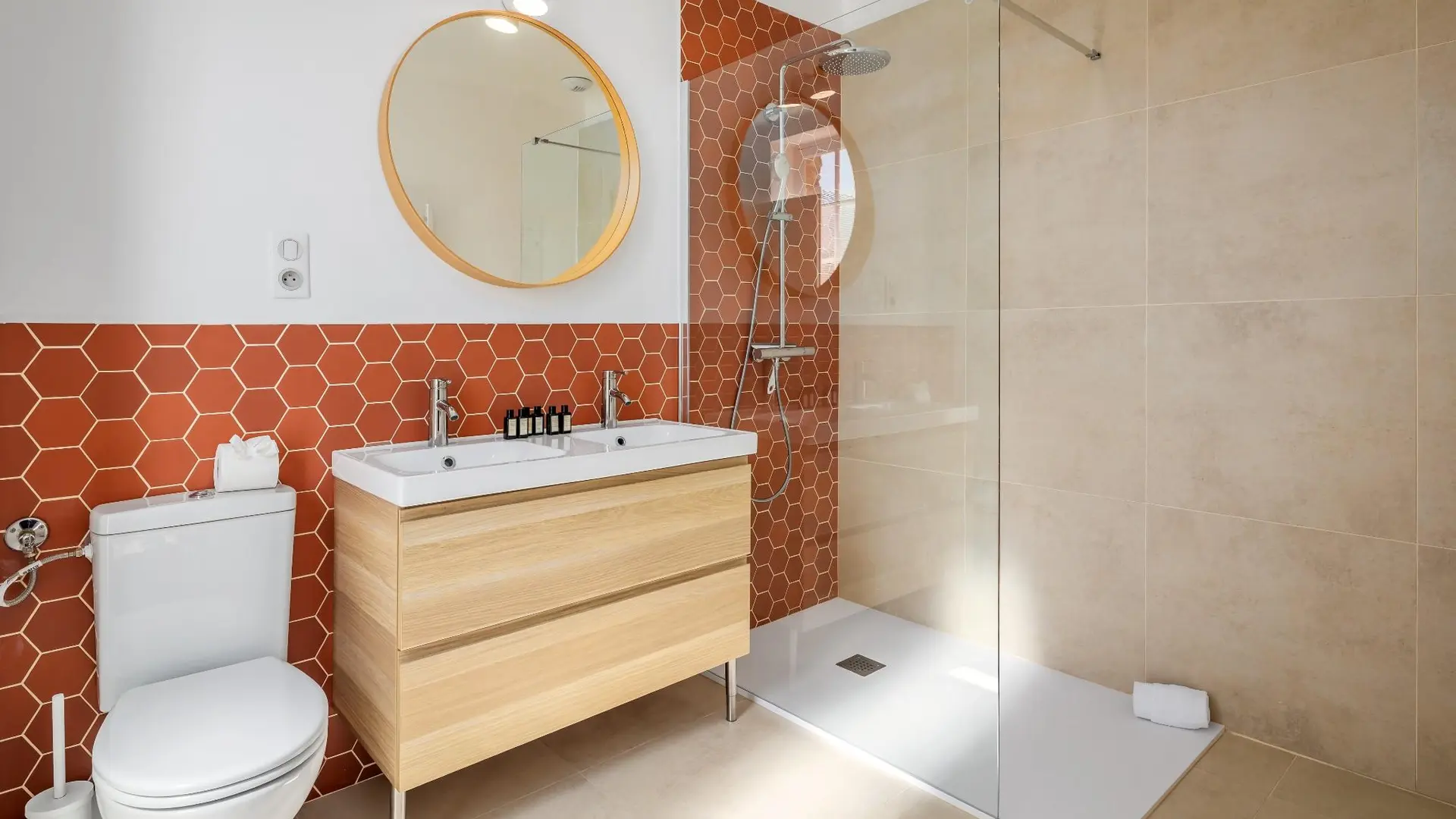 The house has a beautiful and large fully equipped kitchen, a large dining room, a TV lounge, 3 large bedrooms of 25 m² with bed 160, air-conditioned with each a bathroom & toilet, a laundry room equipped with a washing machine & dryer.