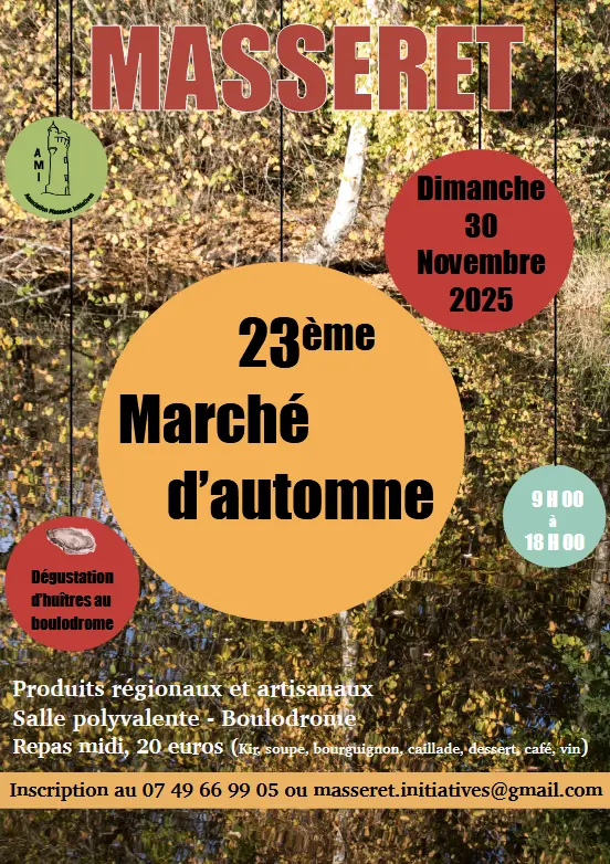 Sale of regional and artisanal products indoors and outdoors. Oyster tasting at the boulodrome. Lunch (kir, soup, bourguignon, caillade, dessert, coffee, wine) 20?
