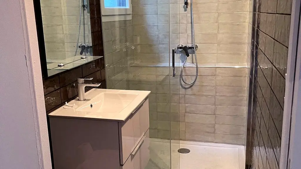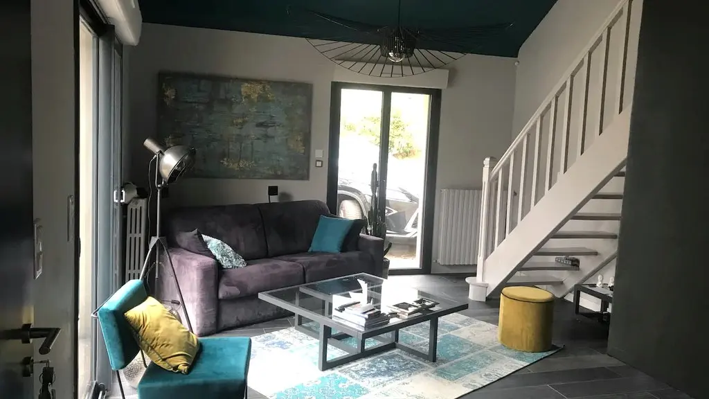 The first floor is composed of a living room, a large convivial kitchen opening on the terrace, a 1st bedroom (1 bed 160) and its shower-room, the WC is independent. On the second floor, under the roof, there are 2 other bedrooms (1 bed 160, 1 bed 140, 1 bed 90) and their shower room/WC.