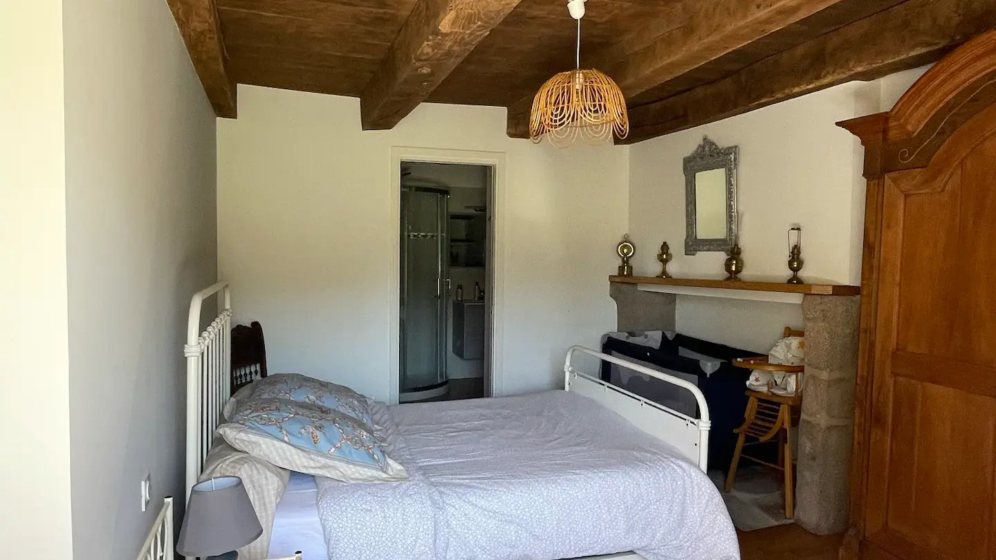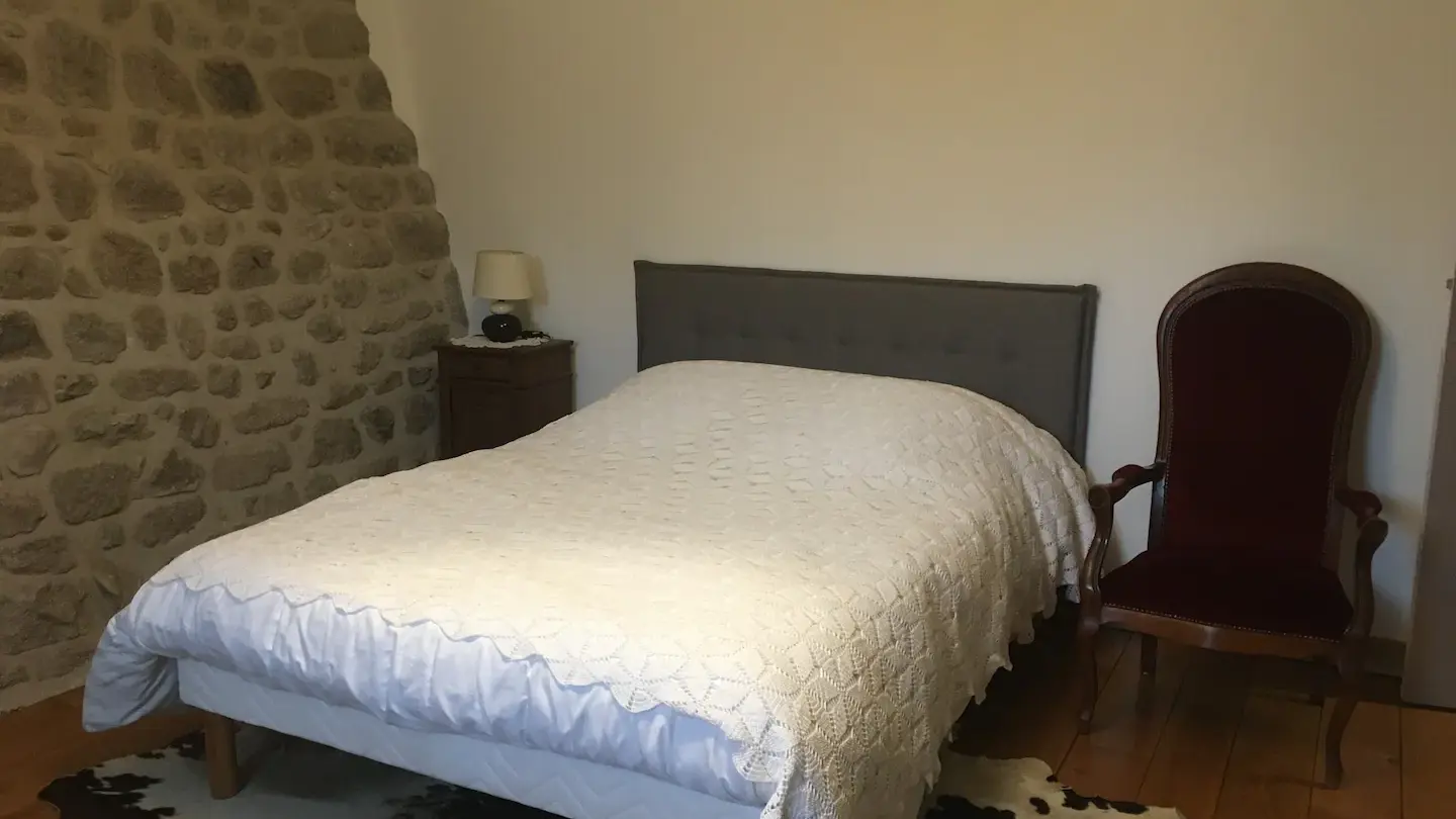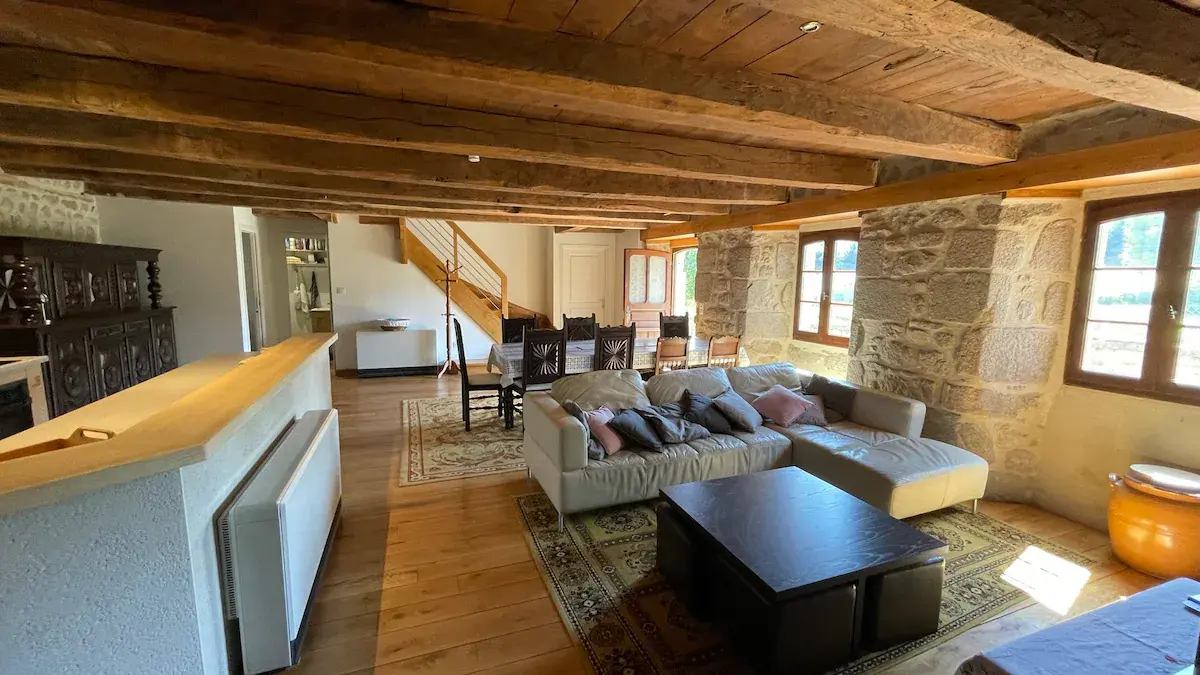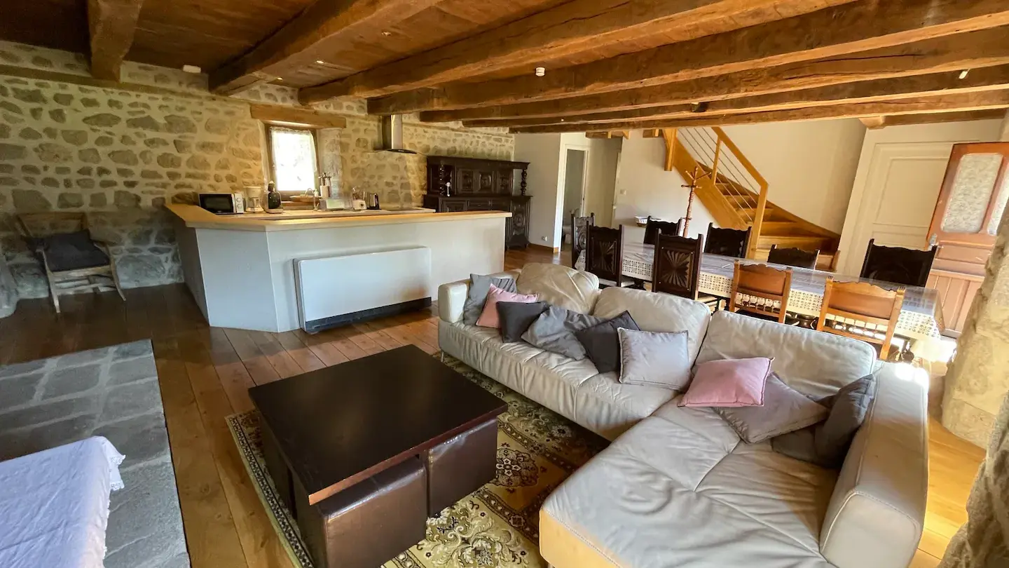 Traditional country house renovated in 2019 with exposed beams and stonework, bassières and inglenook fireplace.