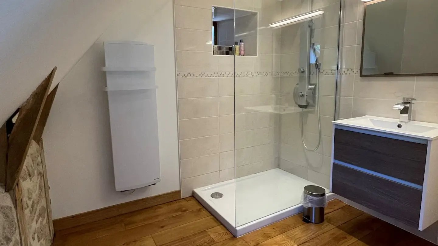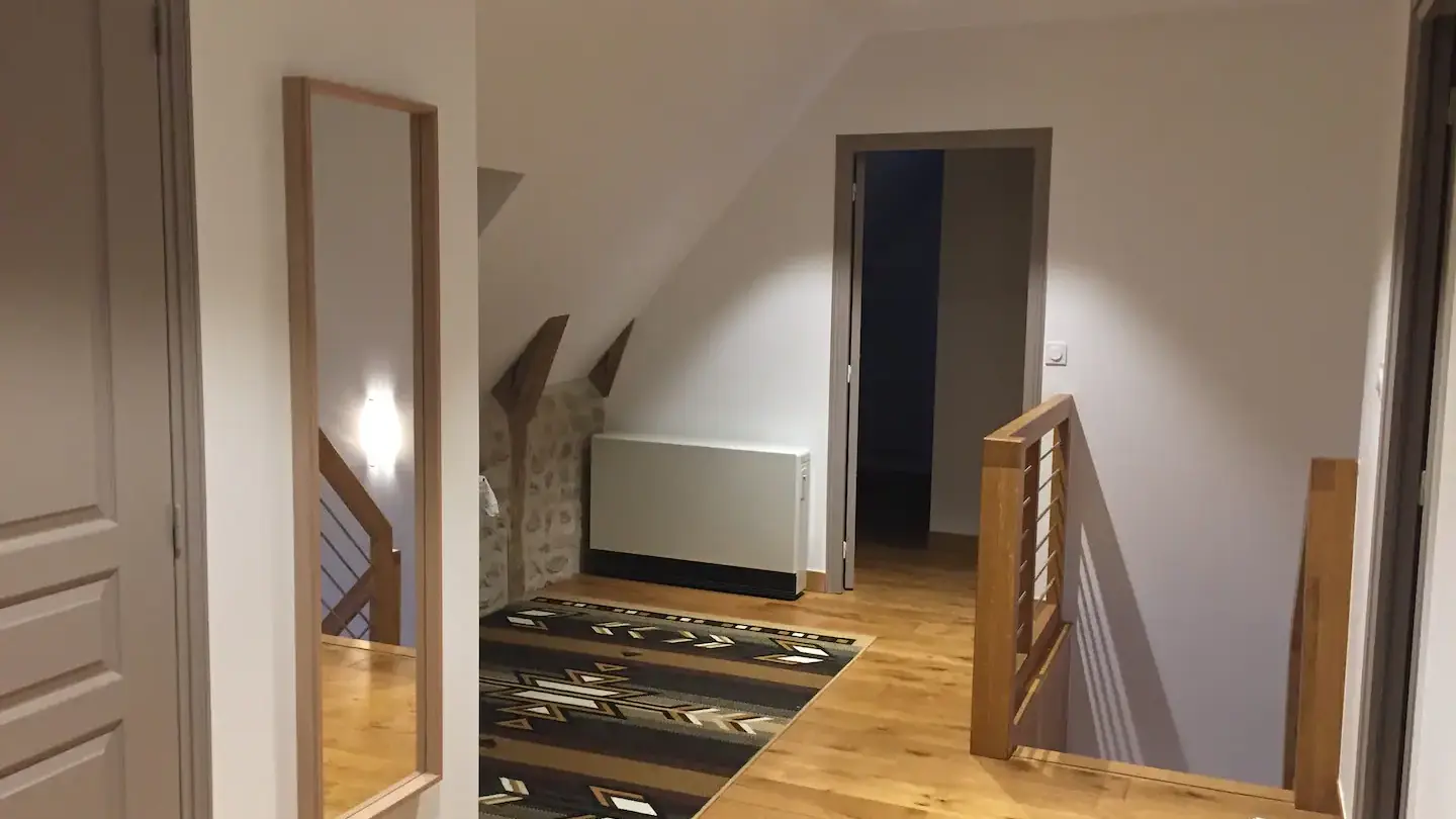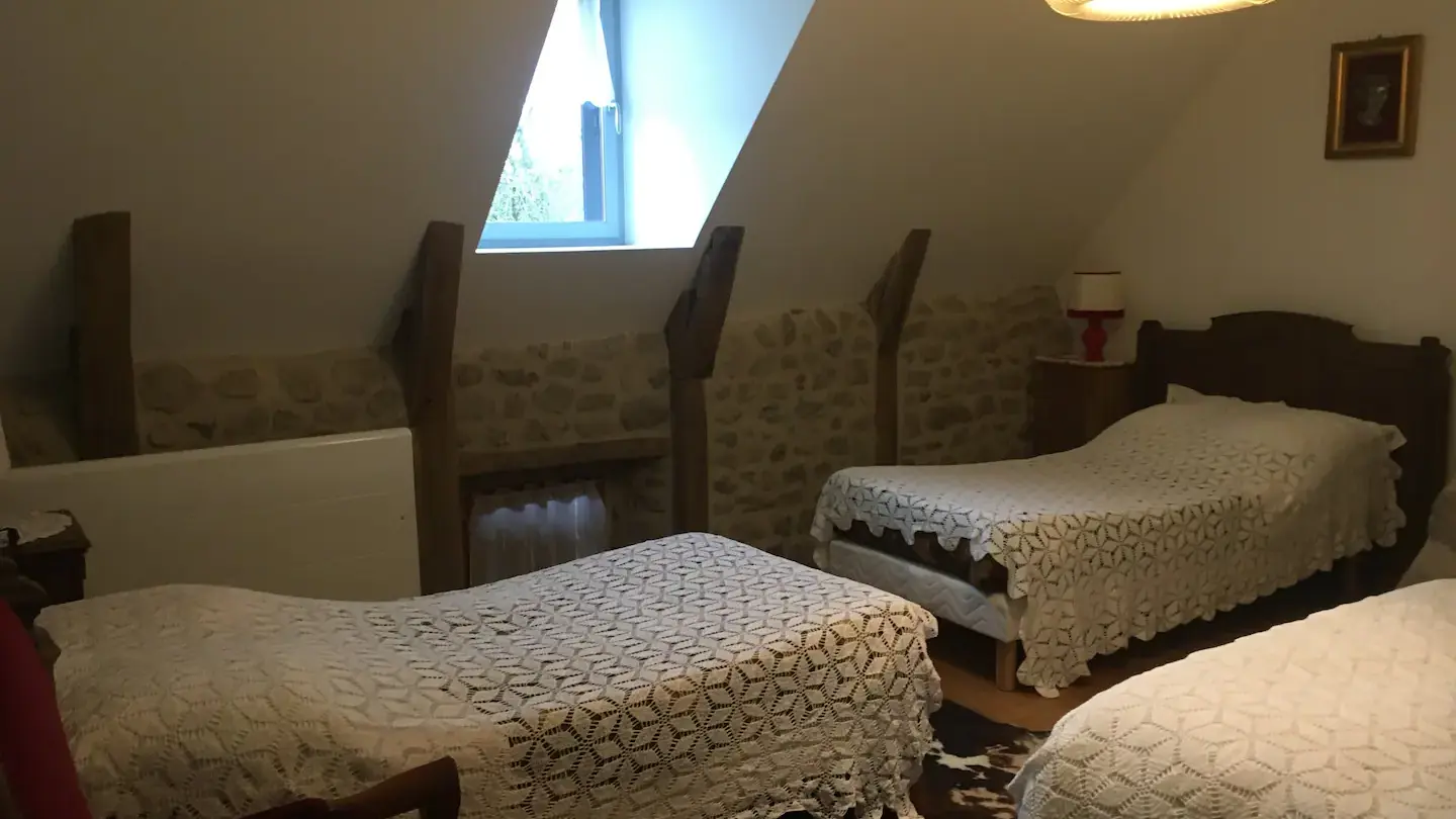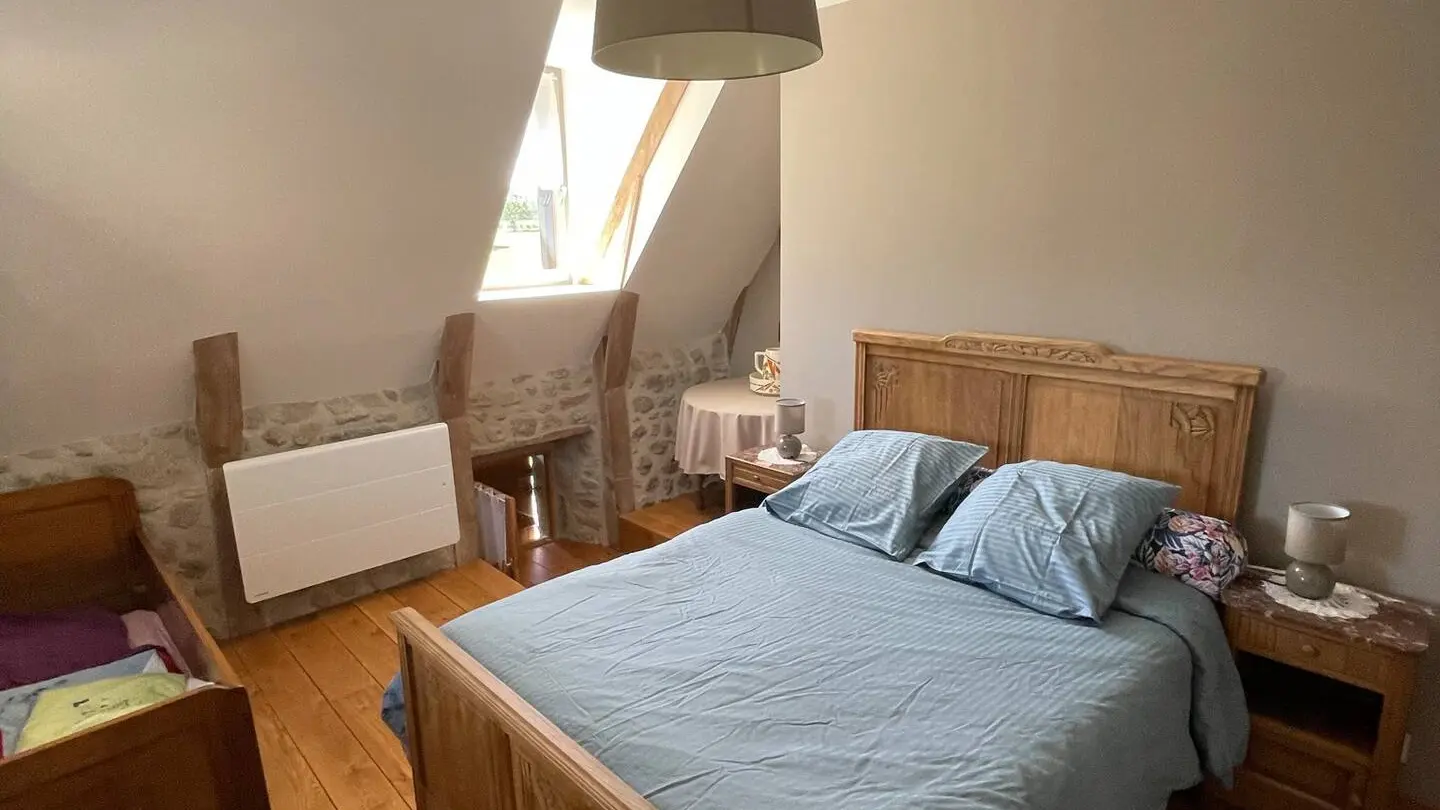 Traditional country house renovated in 2019 with exposed beams and stonework, bassières and inglenook fireplace.