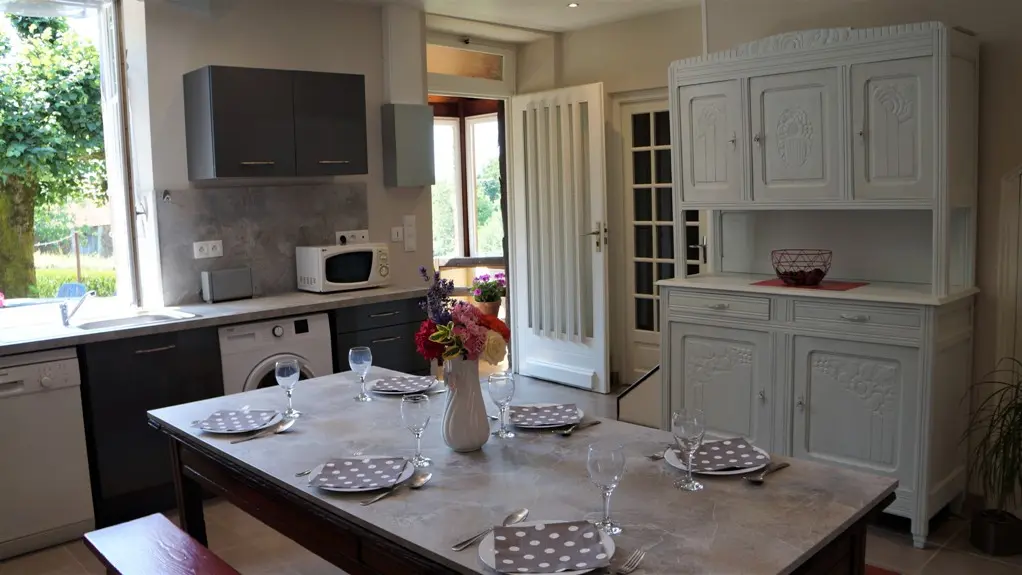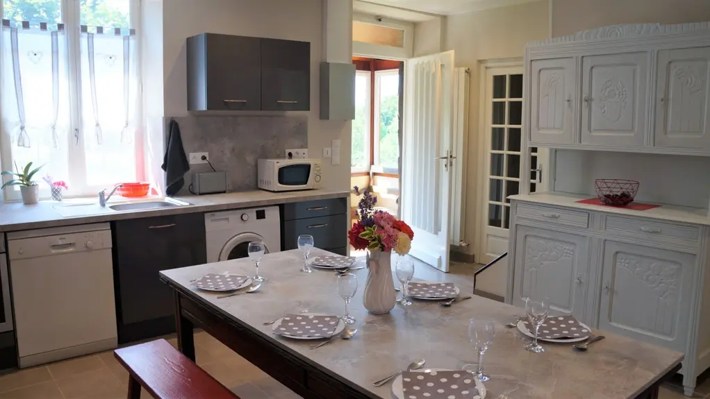 The gite has a nice living room with a fully equipped kitchen (dishwasher, washing machine, coffee machine...), a bright and cosy living room (with TV, WIFI), 3 bedrooms (2 double beds in 140 and a bunk bed), a bathroom with an Italian shower. Household linen is included. The garden is ideal for eating outside on sunny days.