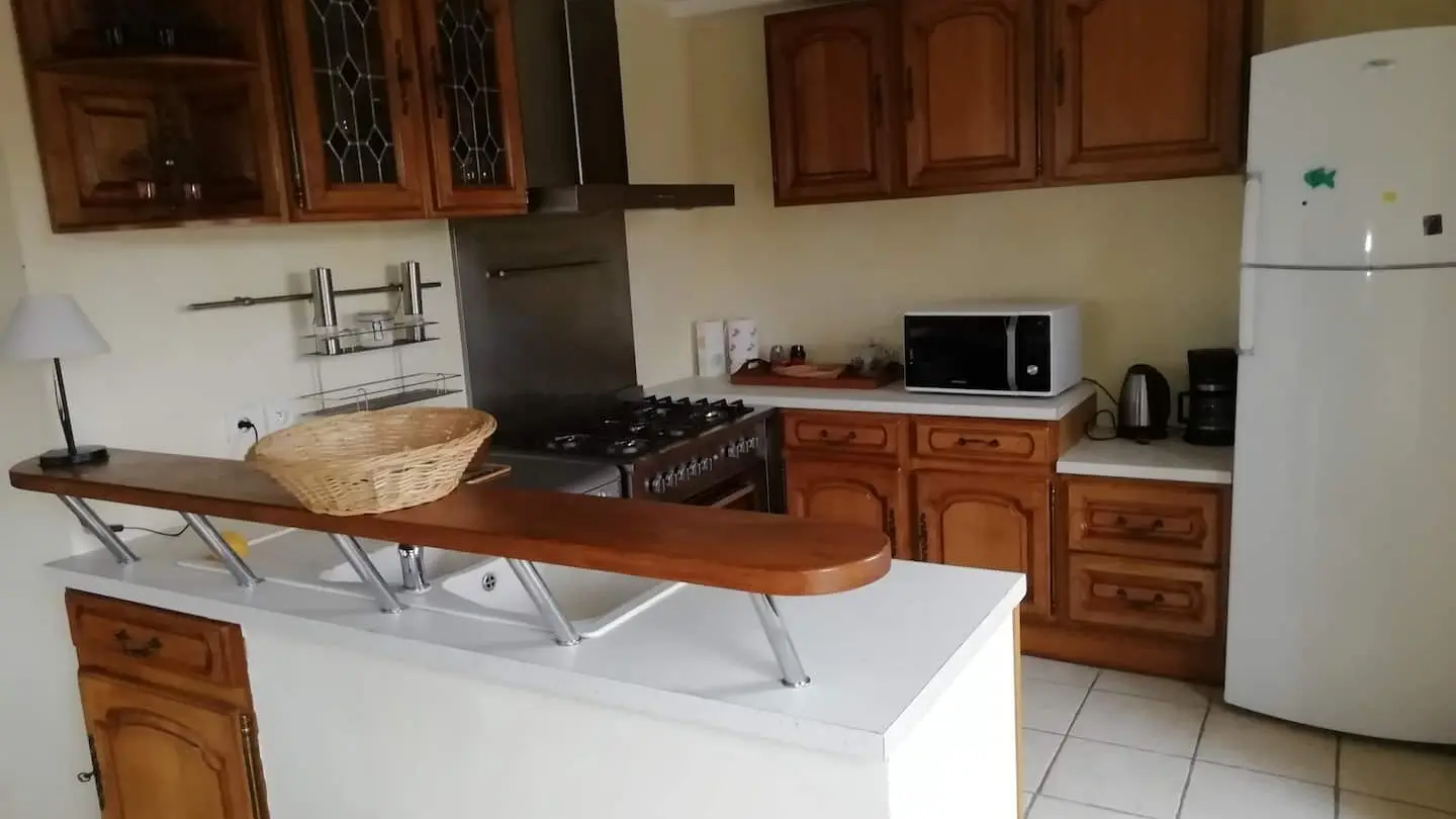The house has on the ground floor a fully equipped kitchen (oven, fridge / freezer, MO, piano 5 gas burners, ...), dining room, lounge with sofa bed and a toilet.