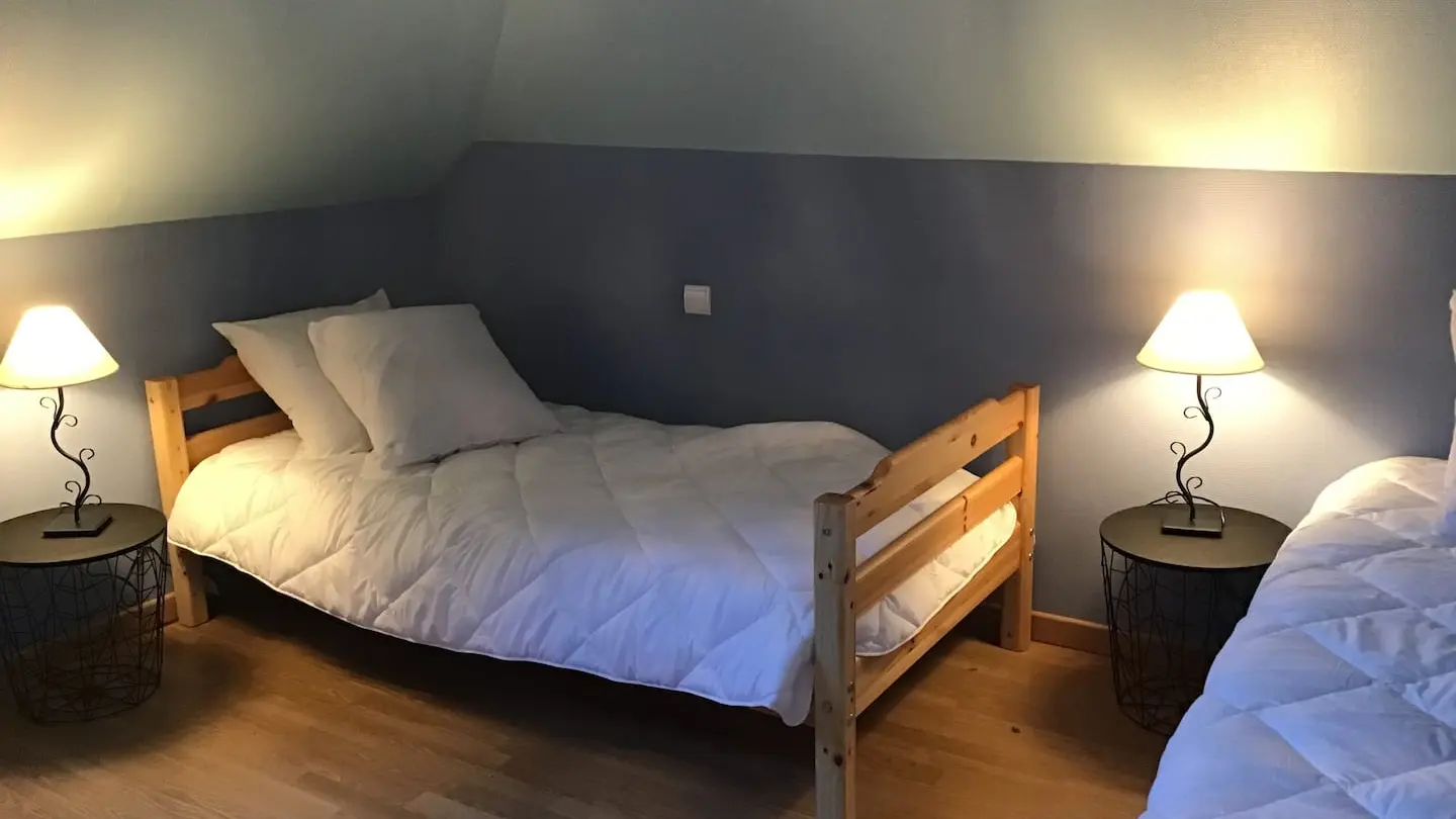 On the first floor, there are two bedrooms (1 bed in 140 and 2 beds in 90) with shower room and a toilet.