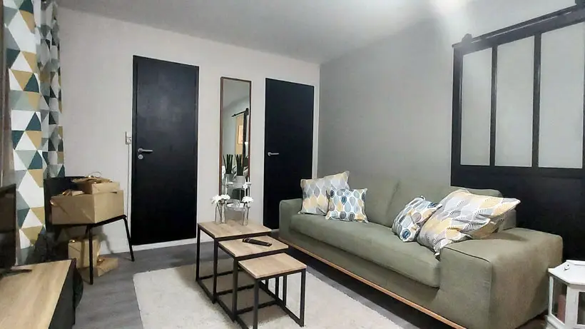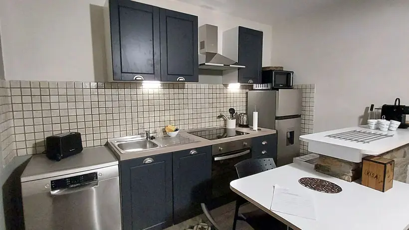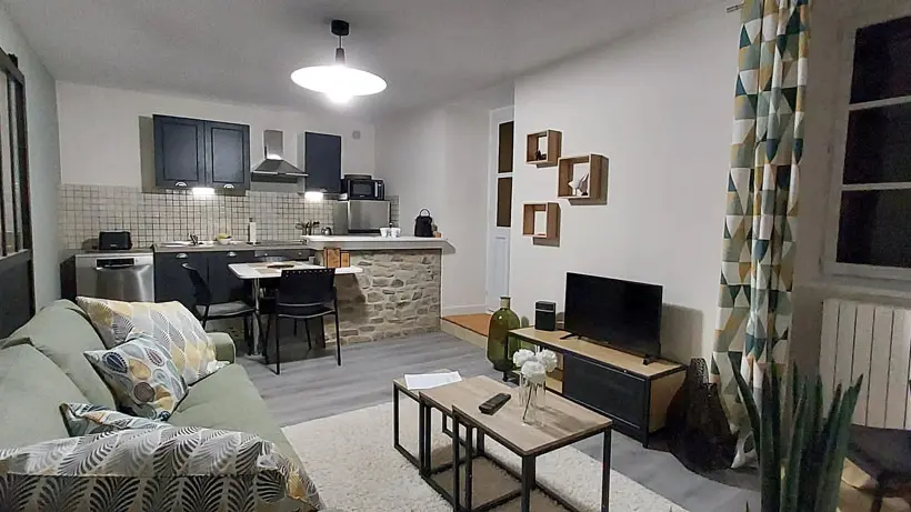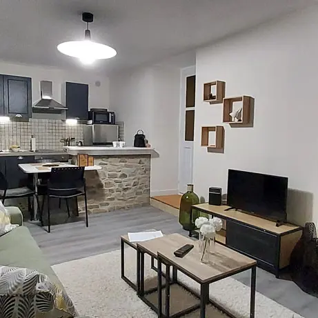 Living room with equipped kitchen, lounge with sofa bed, bathroom with shower and toilet and a bedroom with double bed (new bedding). Parking in front of the apartment reserved for the tenant. A key box is on site and will allow you to arrive at your convenience.