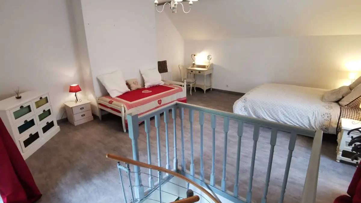 Small, fully renovated house (adjoining the owners' house), on 2 levels, set in a vast 3.5-hectare fenced meadow overlooking a 4-hectare forest with tracks leading down to the river. It sleeps 3 people.
