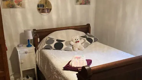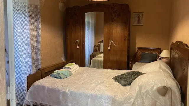 On one level, it has a master bedroom with a double bed (140 cm), communicating with a second bedroom with a single bed (120 cm).