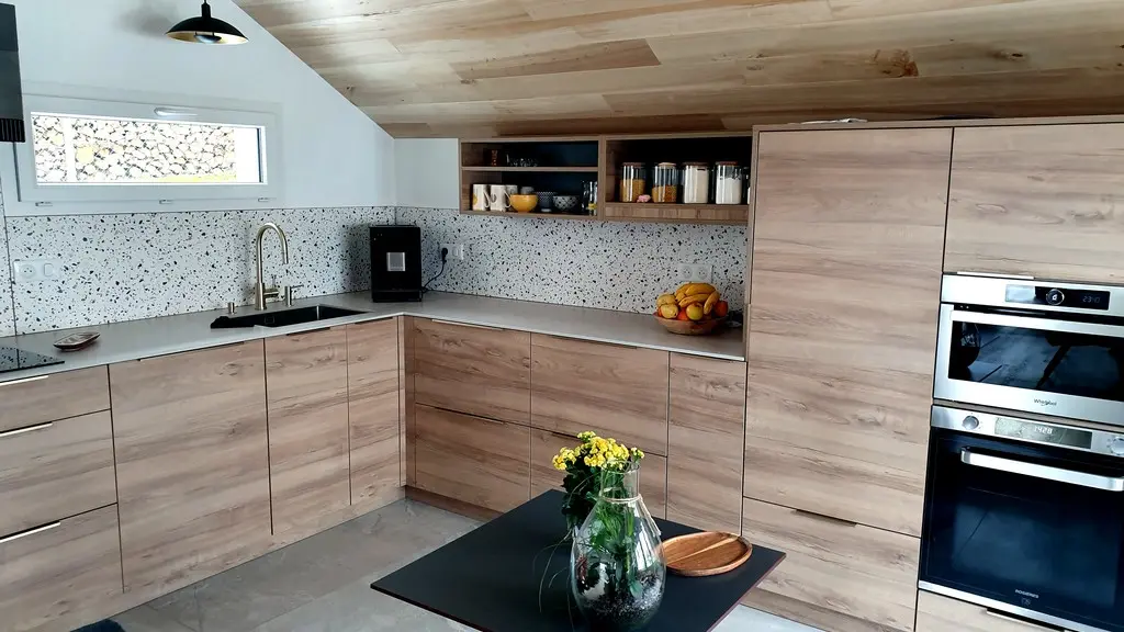 Upstairs, a pleasant mezzanine lounge, a master suite (1 bed 160 and en-suite shower room) and 2 other bedrooms (1 bed 160, 2 beds 90) complete this elegant and functional ensemble.