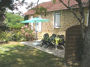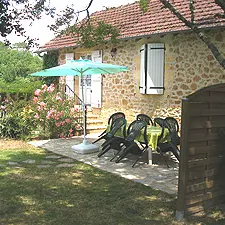House adjoining another rental property. Raised ground floor. Living room with kitchen area. 2 bedrooms: 1 double bed and 2 single beds. Shower room and WC. Electric heating. Washing machine. Dishwasher. TV. Prepaid mobile phone (mobicarte) available upon request. Grounds shared with other rental properties. Terrace. Garden furniture. Swimming pool. Barbecue. Parking. Bed linen provided. English spoken. Shops, doctor, chemist : 2 km.