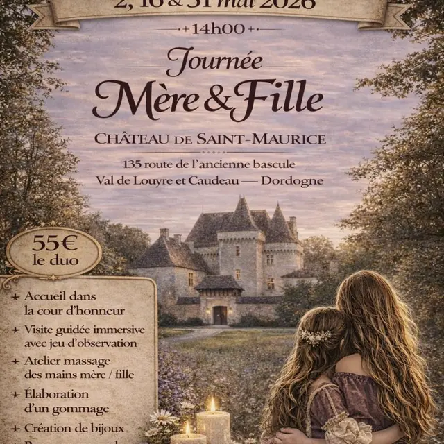 On the programme: a welcome in the main courtyard, a tour of the château with an observation game, a mother-daughter hand massage, making a body scrub, and jewellery-making. The day ends on a gentle note with a gourmet break and a few photos in the château.
