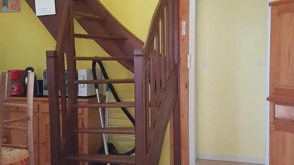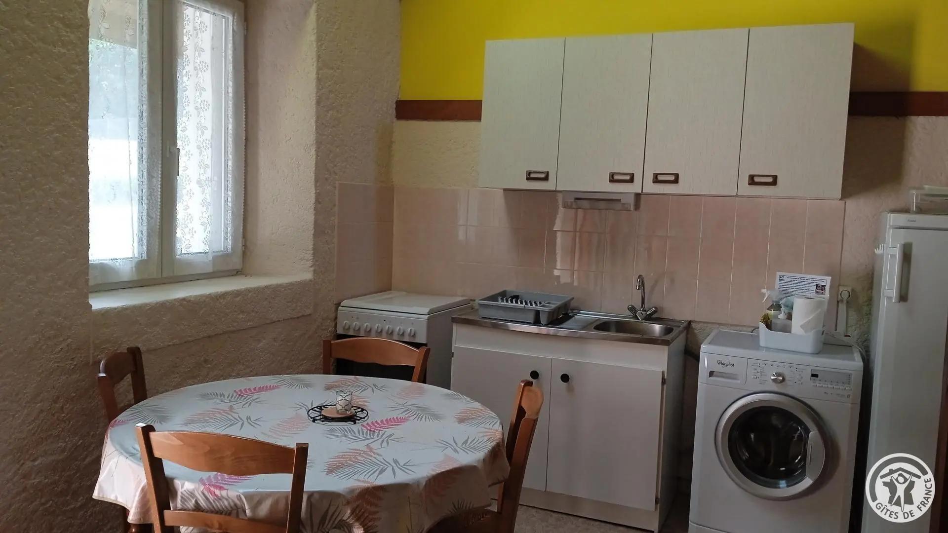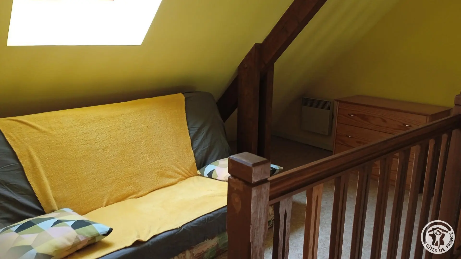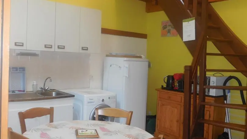 Gite with separate entrance in a former farmhouse renovated into 5 gîtes, bordering a lake with shared, unfenced grounds (approx. 7,000 m2). Adjoining gite n°4, which can be communicated with on request. This apartment comprises a bedroom (1 bed 140), fitted kitchen and a small mezzanine lounge with sofa bed (stairs not recommended for people with mobility difficulties), electric heating. WIFI-4K TV. Bathroom with WC (same room). Baby equipment available free of charge upon reservation. Small terrace with wooden table and bench, shared barbecue in front of the gîte. A cleaning kit with eco-responsible products is provided. Pets accepted under the responsibility of their owner and with respect for the gîte and other residents.