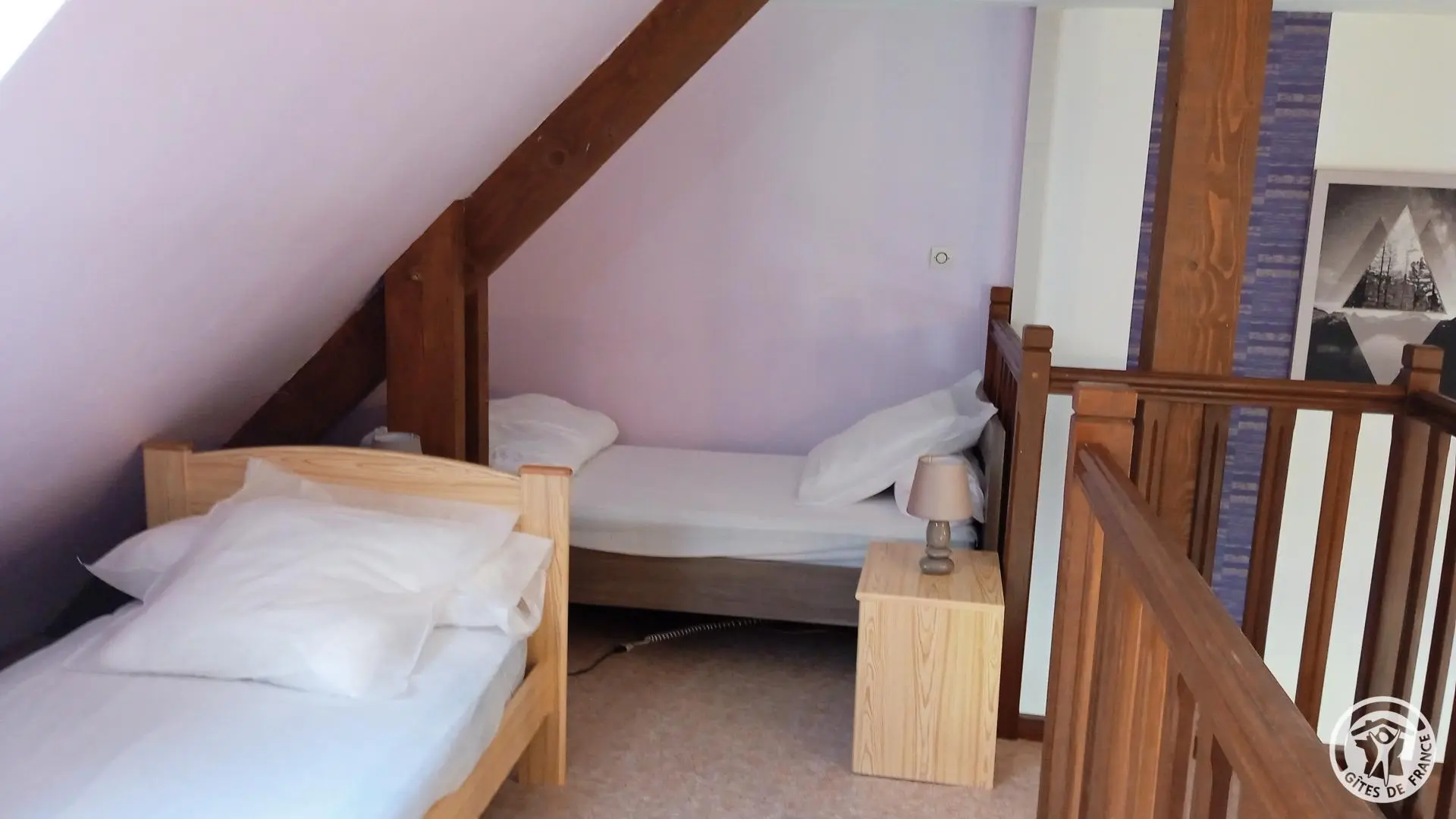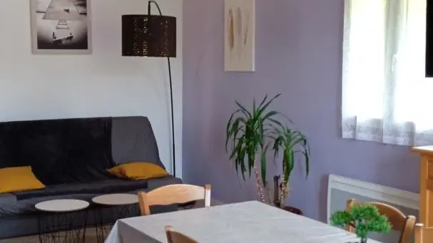 Gite with separate entrance, in a former farmhouse renovated into 5 gîtes, bordering a lake with shared, unfenced grounds (approx. 7,000 m2). This gîte can communicate with the adjoining gîte n°3 and is located above gîte n°5. This apartment comprises a bedroom (1 bed 140) and a mezzanine with 3 beds 90 (staircase not recommended for people with mobility difficulties or young children), a living room with equipped kitchenette, dishwasher, washing machine, sofa bed. WIFI-4K TV. Separate shower room and WC. Free baby equipment on reservation. Cleaning kit with eco-responsible products provided. Pets accepted under owner's responsibility and with respect for the gîte and other residents.