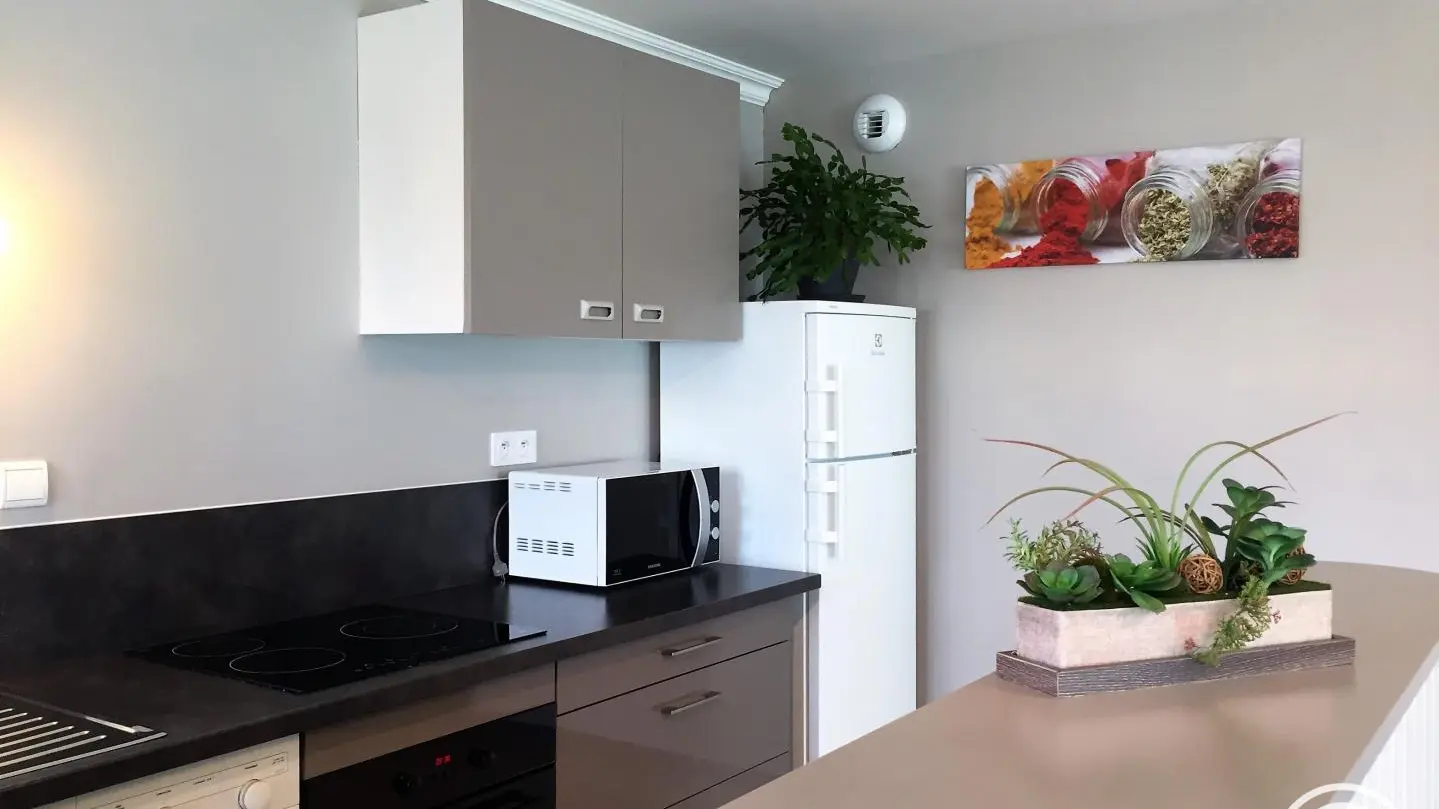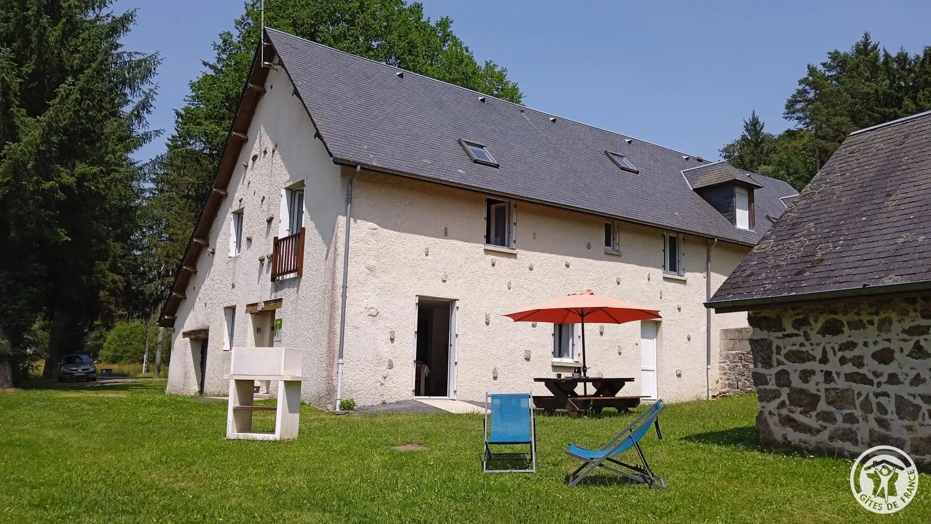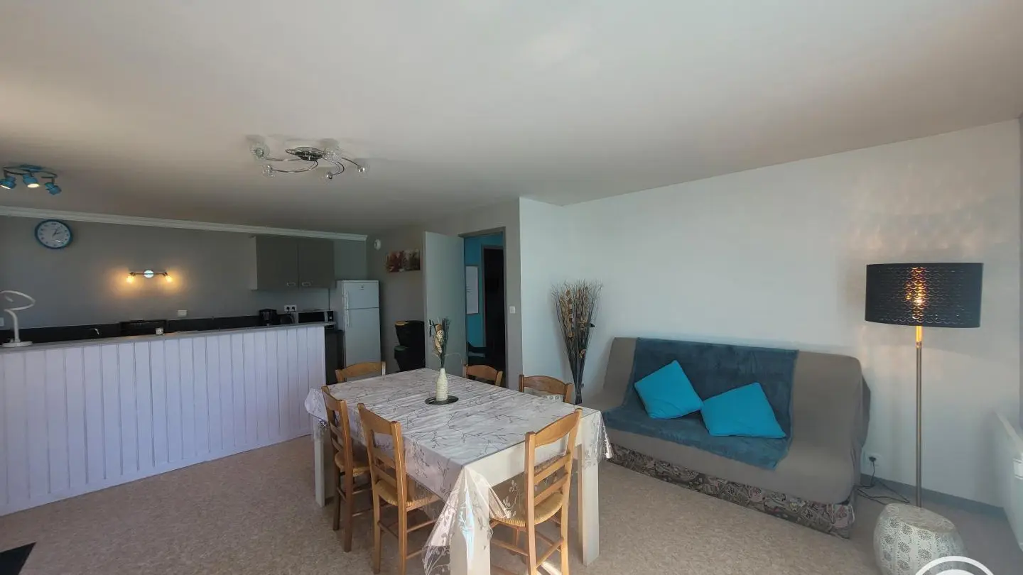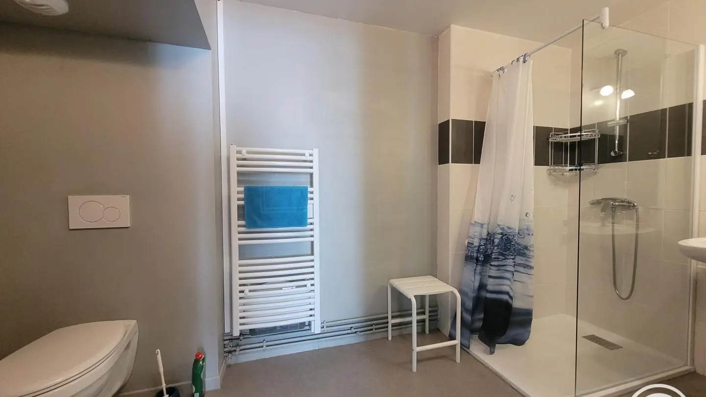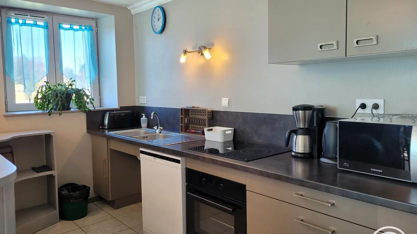Gîte with separate entrance, in an old farmhouse renovated into 5 gîtes, on the edge of a lake with shared, unfenced grounds (approx. 7,000 m2), adjoining gîte no. 4 above. This apartment comprises a bedroom (1 double bed), a spacious living room (sofa bed) with fitted kitchen, washing machine, dishwasher, 1 folding bed on request. Electric heating. WIFI 4K TV. Bathroom with toilet (same room) and shower with facilities for disabled guests. A cleaning kit with eco-responsible products will be provided. Baby equipment available free of charge upon reservation. Pets welcome under owner's responsibility and with respect for the gîte and other residents.
