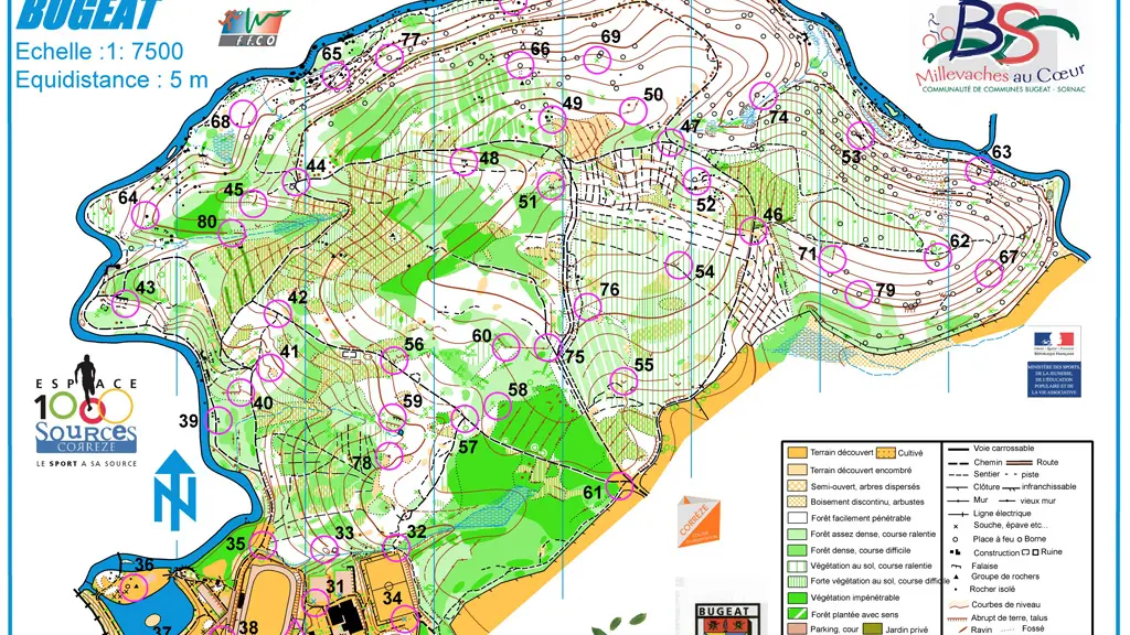 Approved by the French Orienteering Federation. 7 levels of practice from beginner to confirmed: 3 green courses (2.5 km, 4 km, 5.5 km), 2 blue courses (3.5 km and 5.5 km), 1 red course (6 km) and 1 black course (6 km)