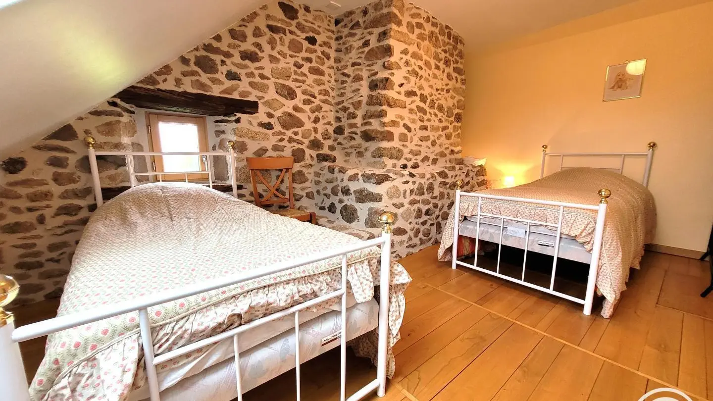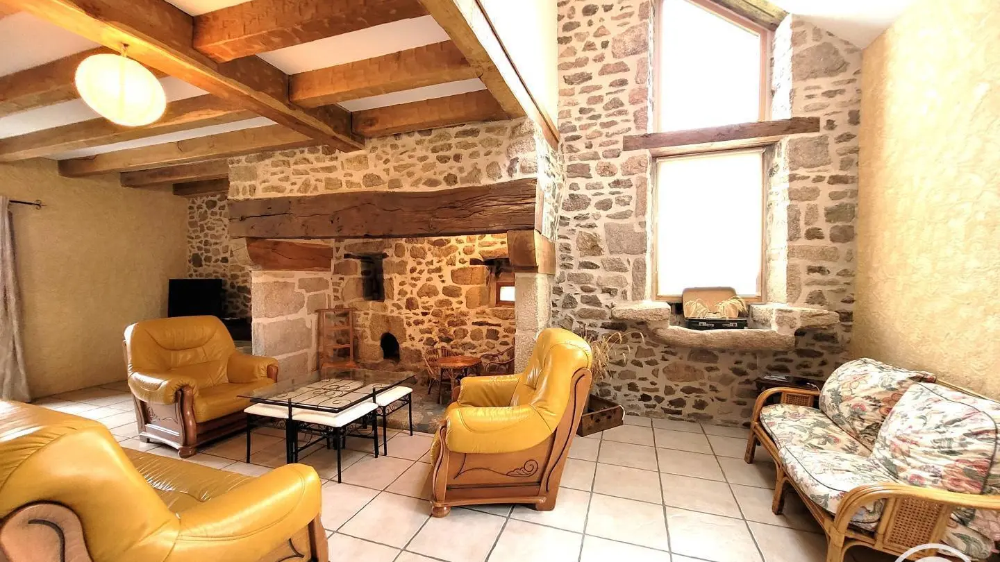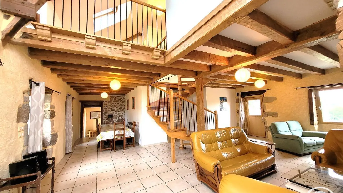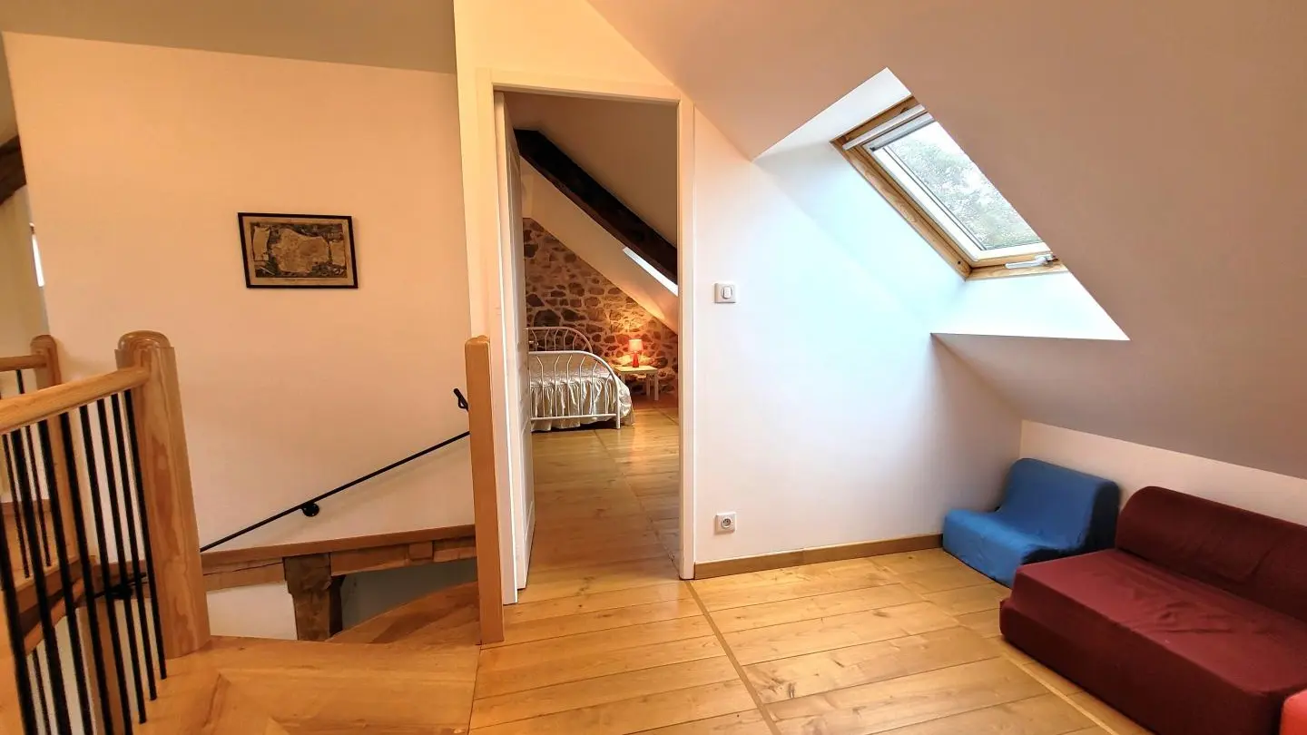 Superb, lovingly restored, character stone farmhouse in the heart of a small hamlet. Ideal for large groups, you'll benefit from the calm, space and nature surrounding the gîte. Semi-independent house, very bright thanks to its many windows, with terrace, private garden and courtyard. Benefits: panoramic views of the surrounding countryside from the terrace and bedrooms, comfortable, complete baby equipment.