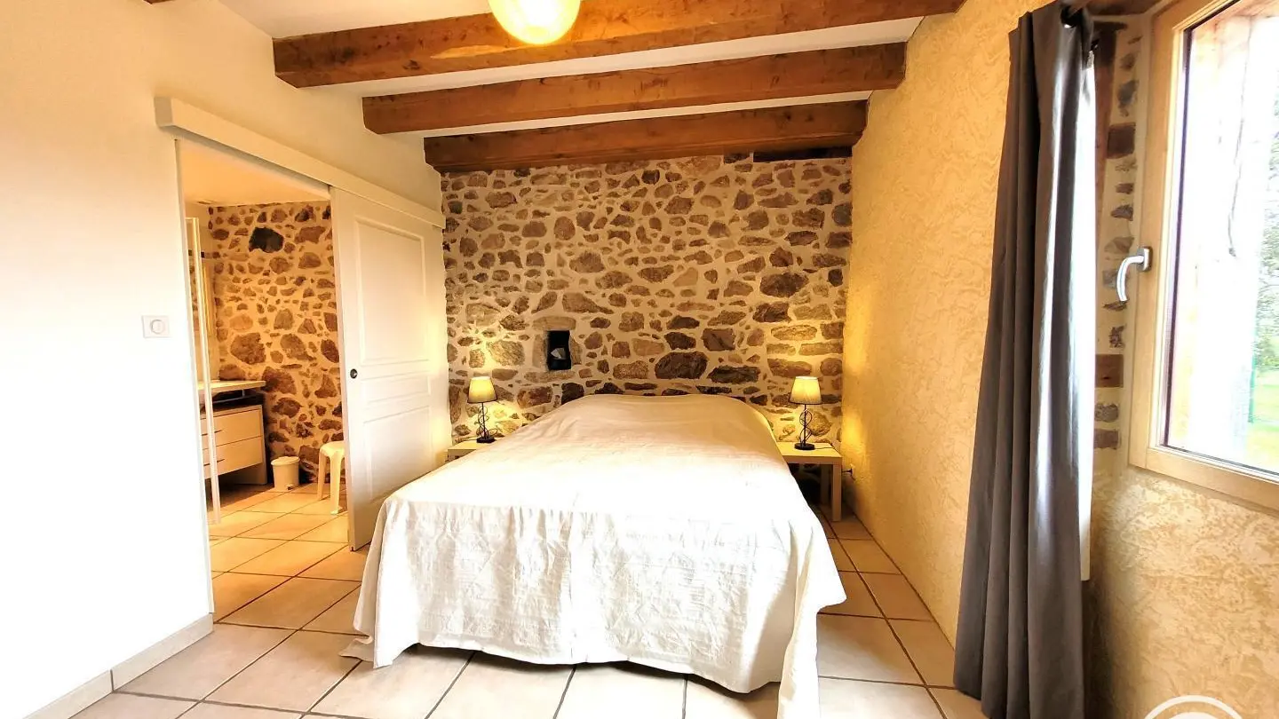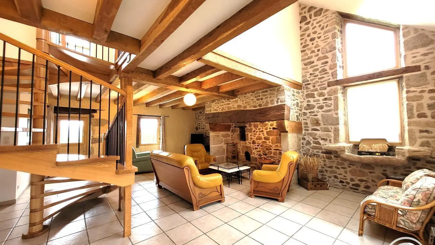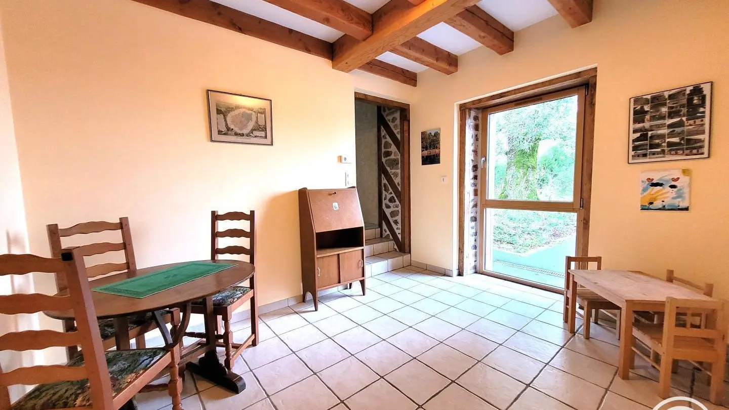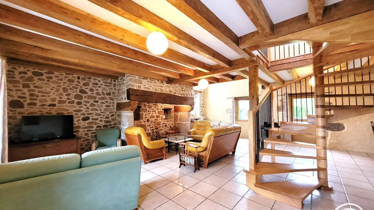Superb, lovingly restored, character stone farmhouse in the heart of a small hamlet. Ideal for large groups, you'll benefit from the calm, space and nature surrounding the gîte. Semi-independent house, very bright thanks to its many windows, with terrace, private garden and courtyard. Benefits: panoramic views of the surrounding countryside from the terrace and bedrooms, comfortable, complete baby equipment.
