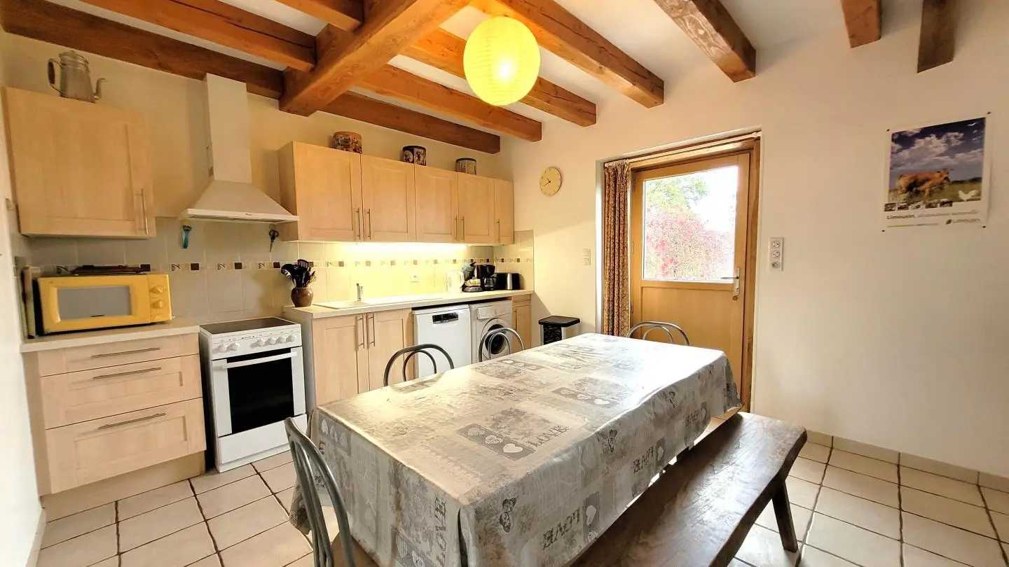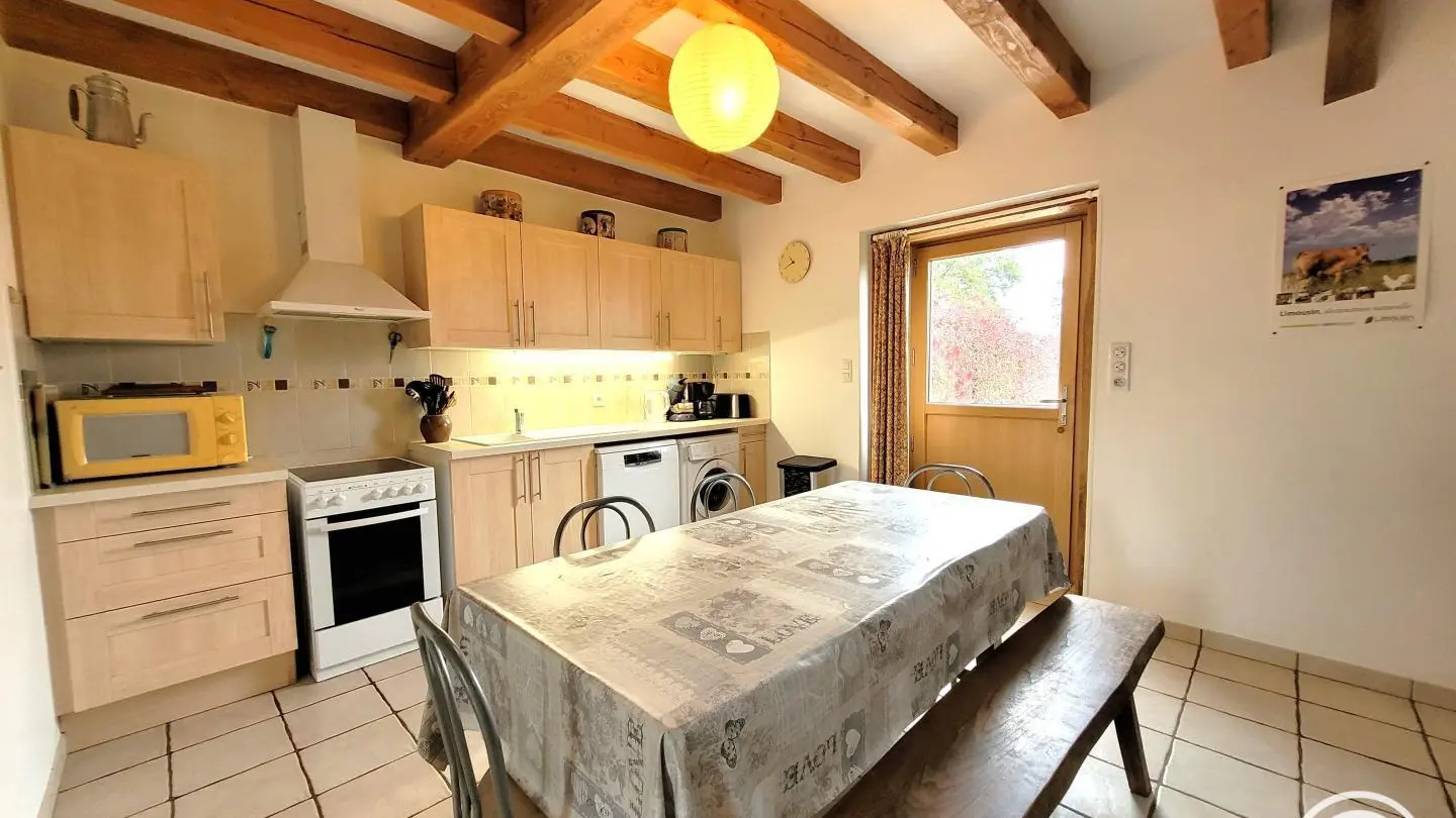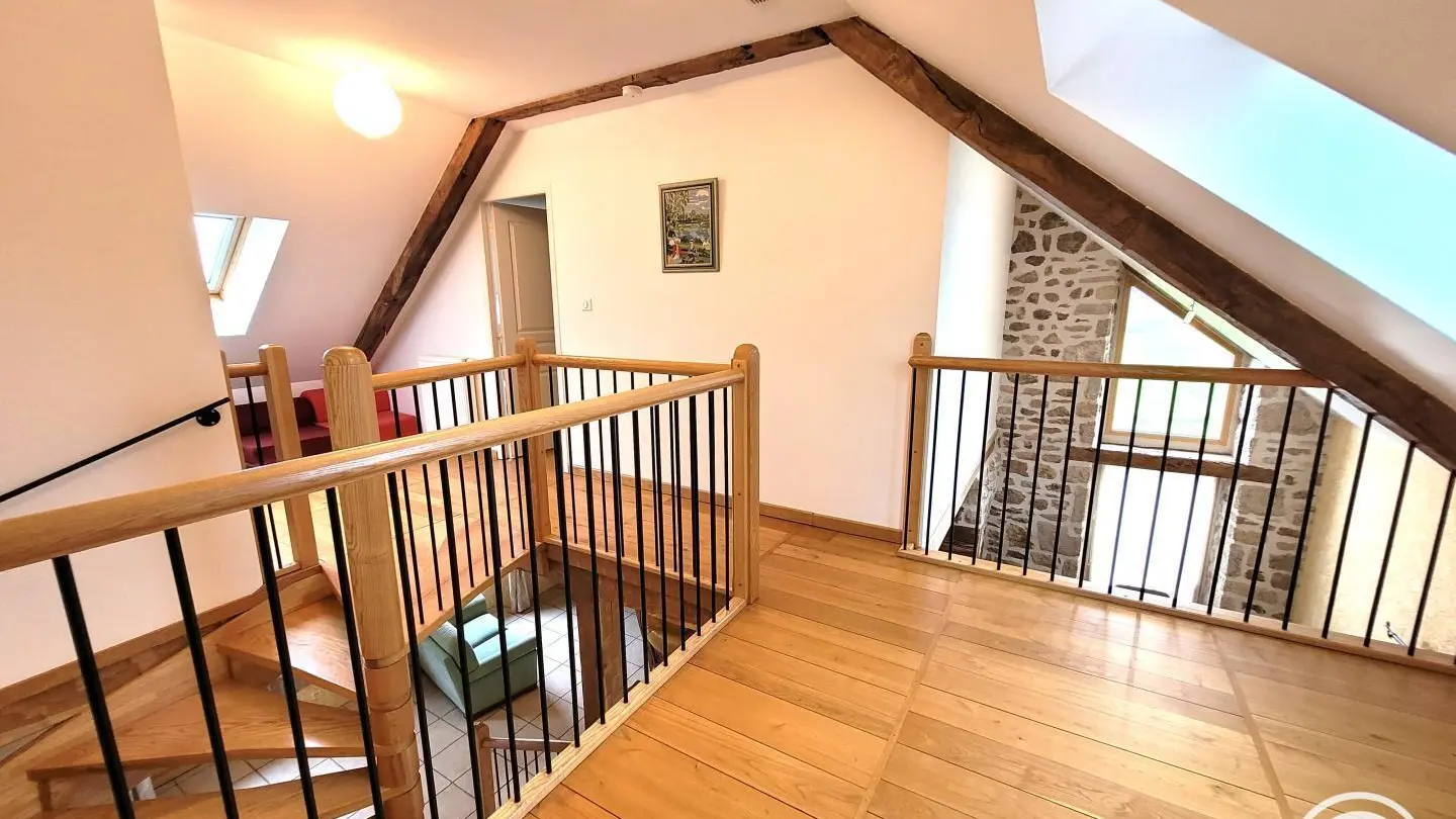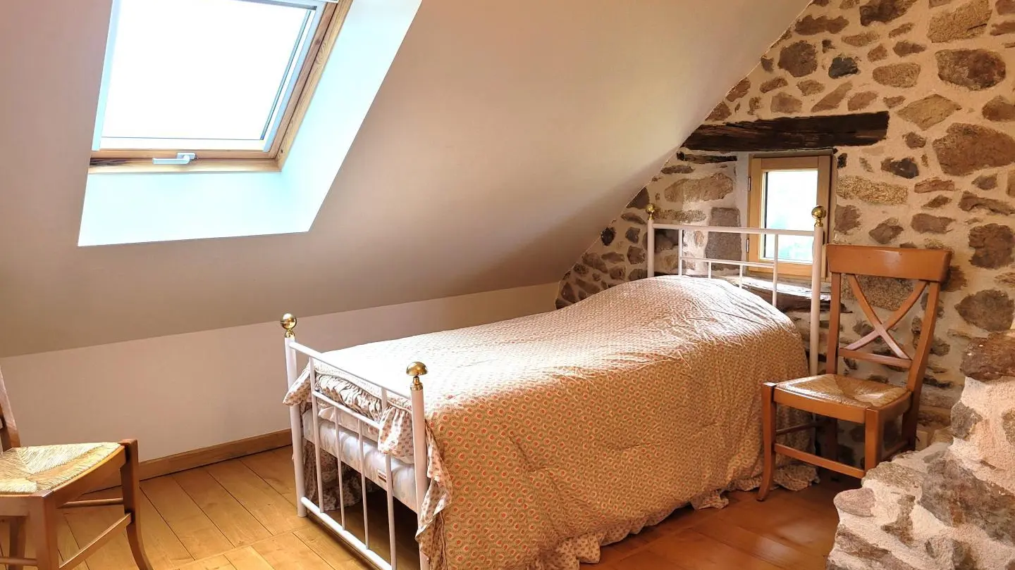 Superb, lovingly restored, character stone farmhouse in the heart of a small hamlet. Ideal for large groups, you'll benefit from the calm, space and nature surrounding the gîte. Semi-independent house, very bright thanks to its many windows, with terrace, private garden and courtyard. Benefits: panoramic views of the surrounding countryside from the terrace and bedrooms, comfortable, complete baby equipment.