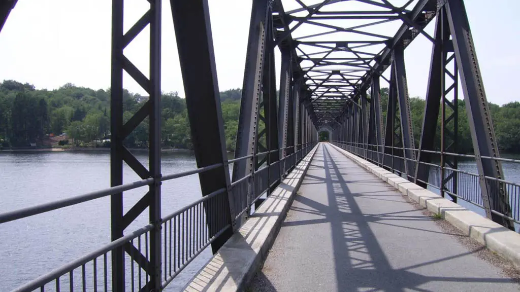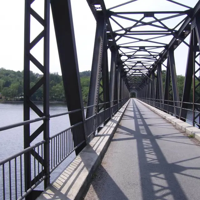 Former railroad bridge used for the Tacot Tulle-Ussel. This 207m-long metal cage bridge was not built until 1949, near Marcillac, due to the construction of the Vallette dam, which covered 5km of the former Transcorrézien route with 15m of water. Previously, the train crossed the Doustre (a tributary of the Dordogne) on a small stone bridge (which can still be seen when EDF empties the reservoir). Today, it serves as a road bridge.
