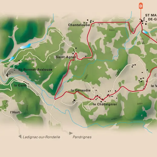 Starting from the church, you will see the beautifully restored village weighing scale and will cross several small hamlets including Saint-Agnol, in the heart of a grassy valley offering superb panoramas.