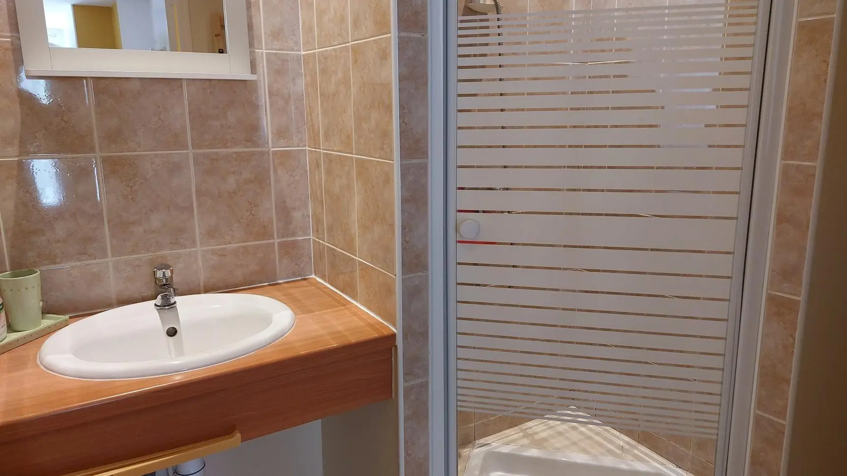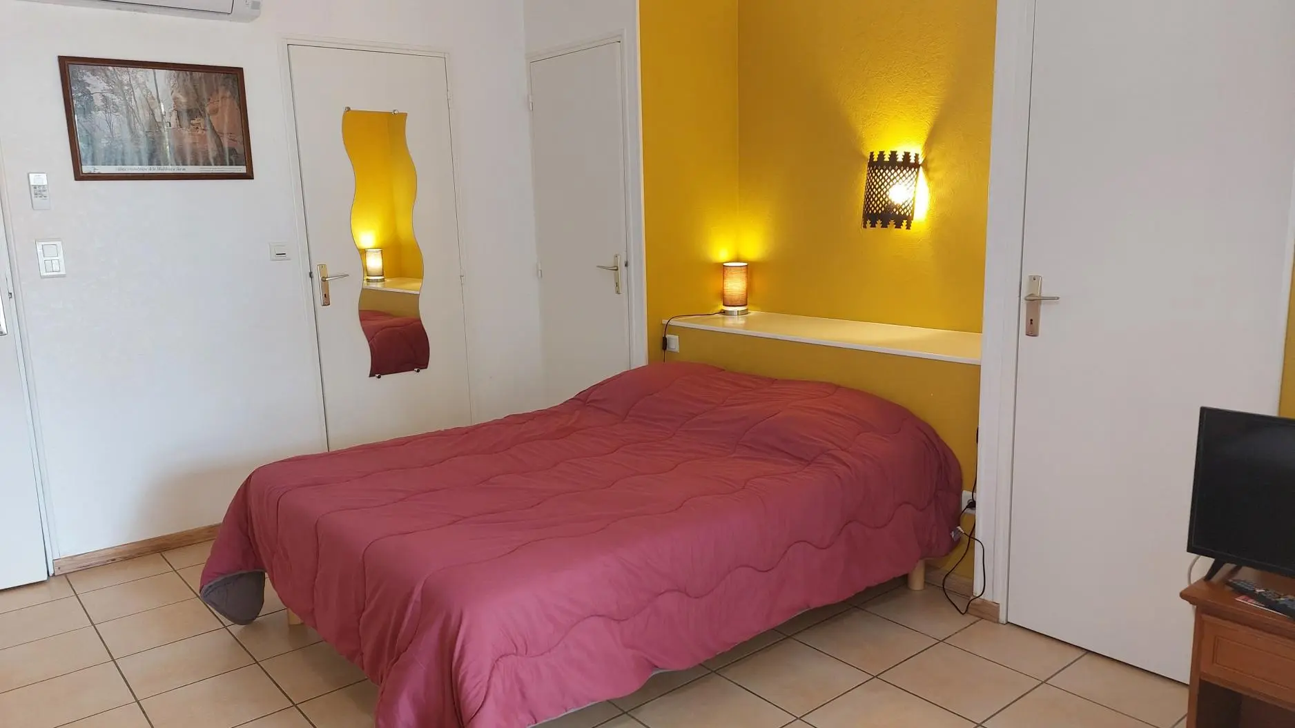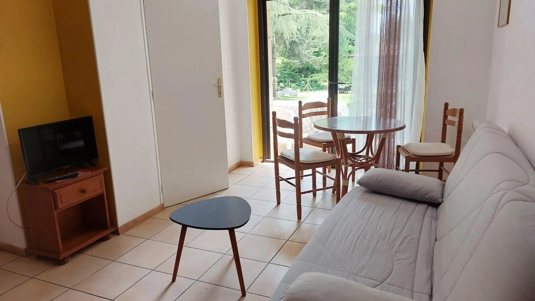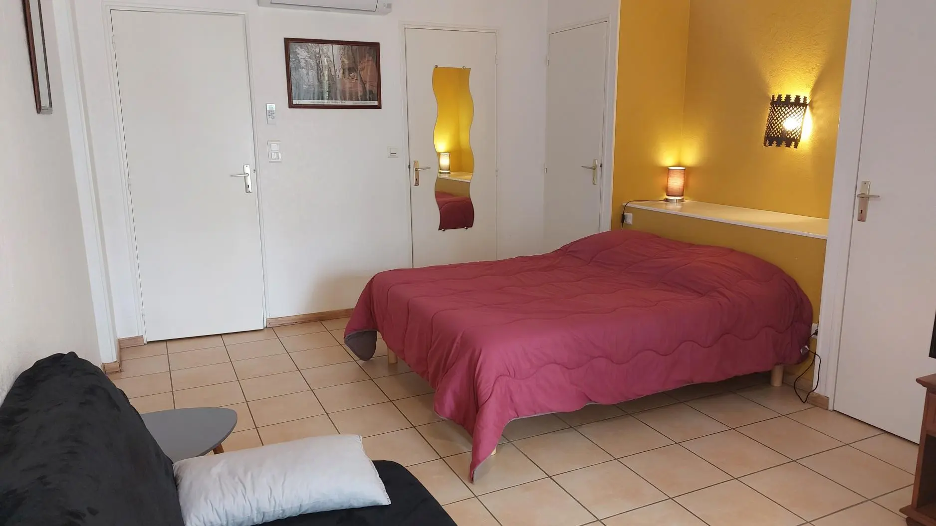 - a sleeping area with 1 double bed (140) + 1 sofa bed for 2 people