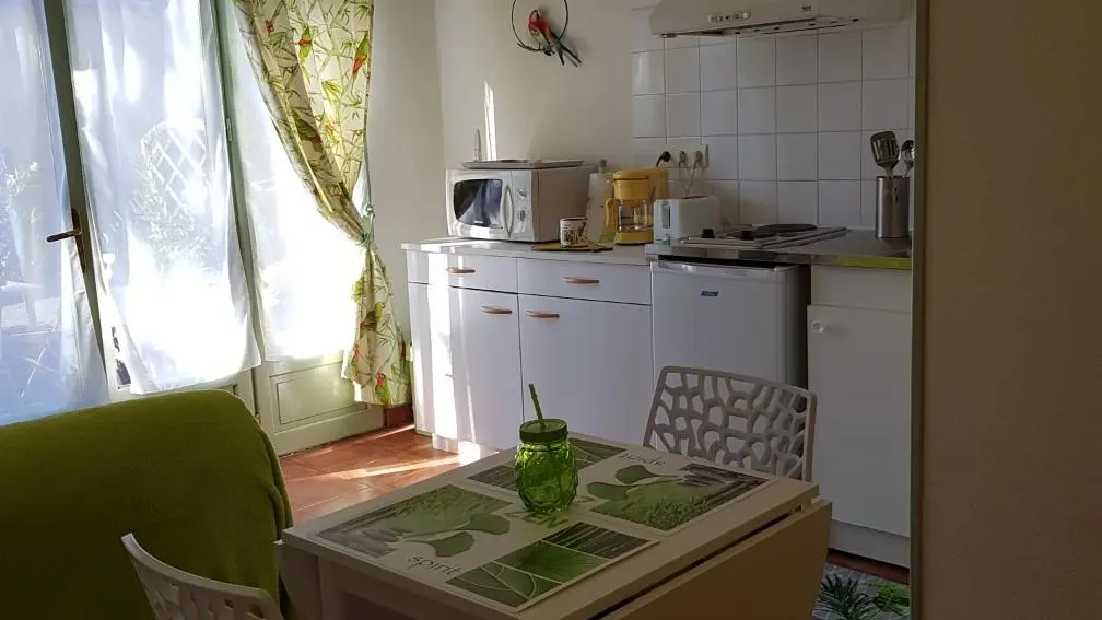 Single-storey studio with free access to the lovely swimming pool, to be shared with 2 other units.Claudie will be there to welcome you.Private parking on site.Bed linen and towels provided.Town center approx. 1.5 km away.1ere bakery less than 1 km away.Bring your bikes, the cycle path is 800 m away.Come by train, the SNCF station is 800 m away.Sleeping area with 1 double bed.Equipped kitchenette.Lounge area with sofa and TV.Shower room + wc.