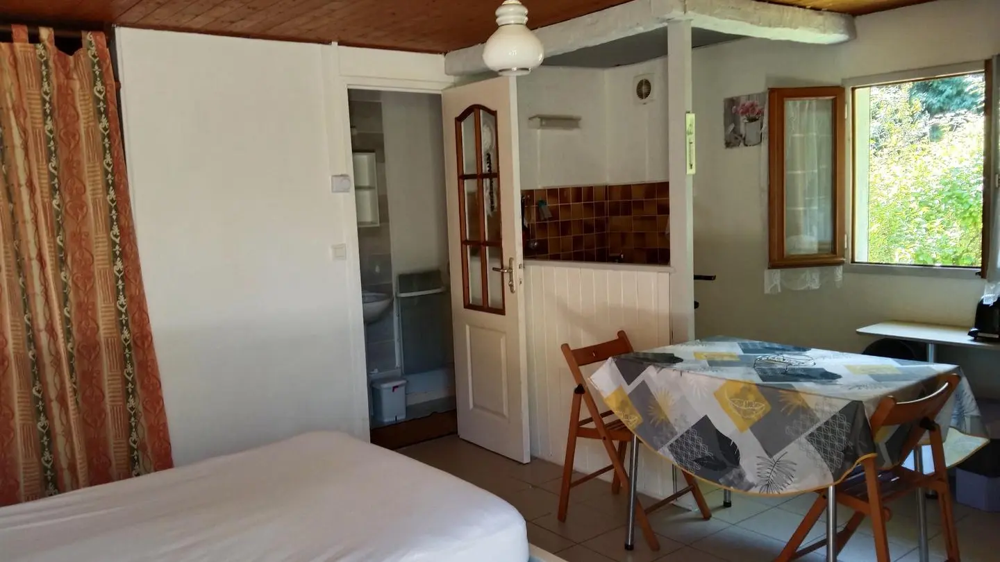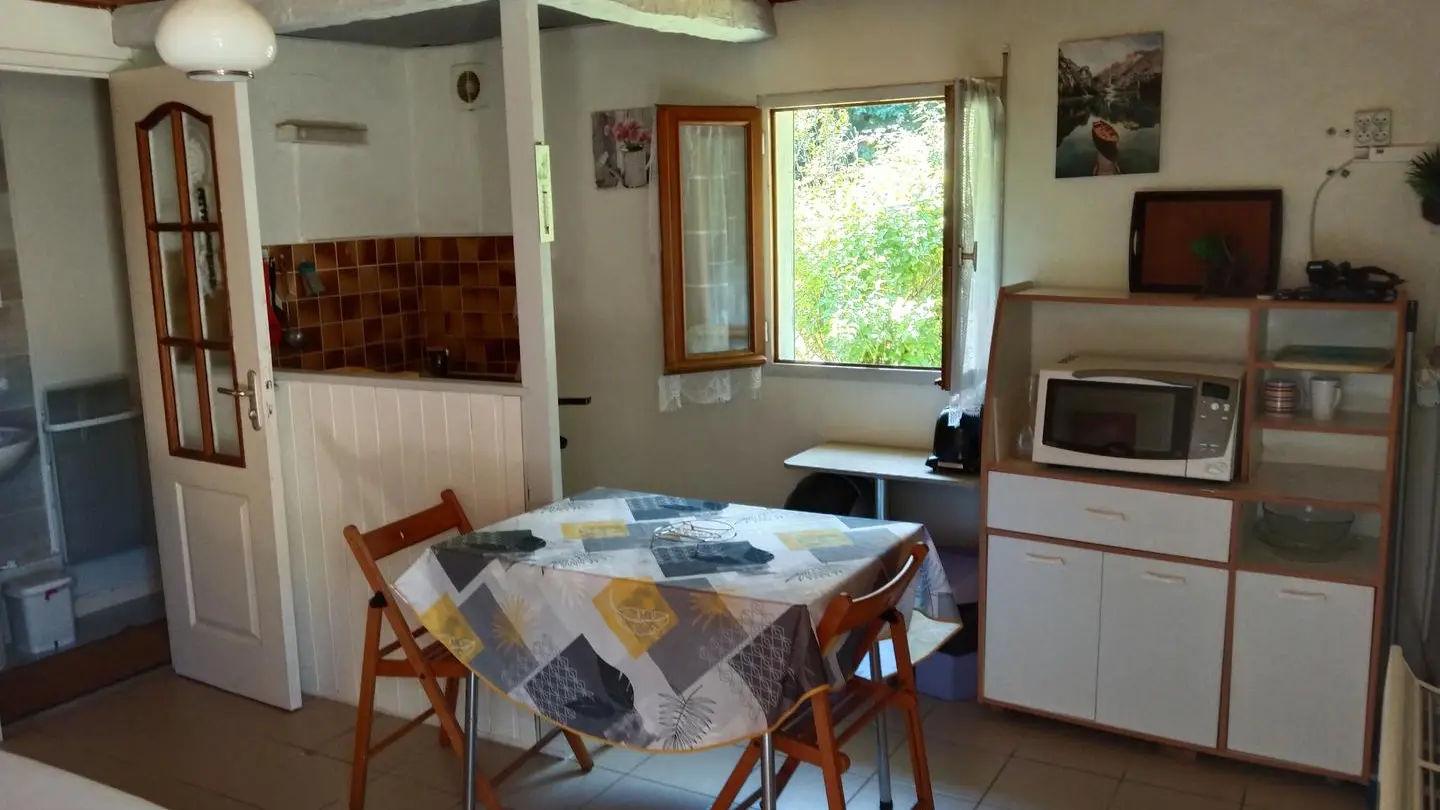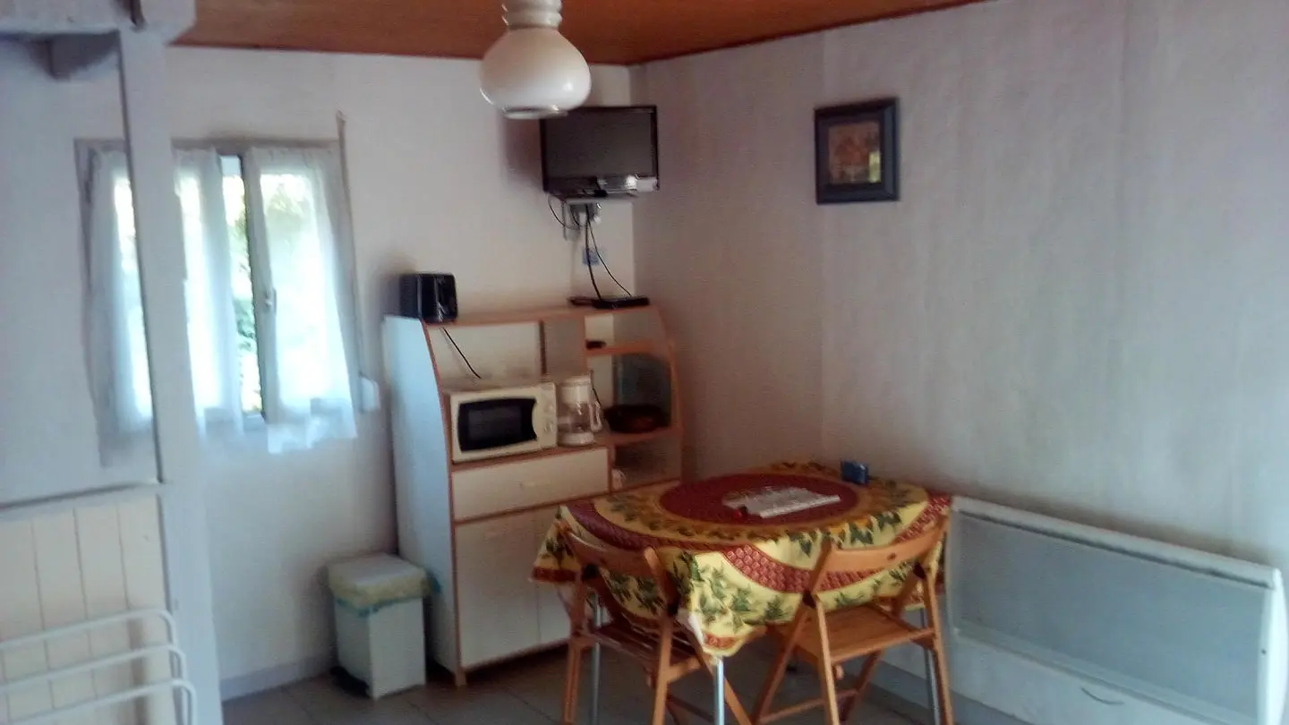 the studio furnished 2 persons this consists of a kitchenette, living room, bathroom with shower closed, sink, wc. outside courtyard castiné with garden furniture, barbecu