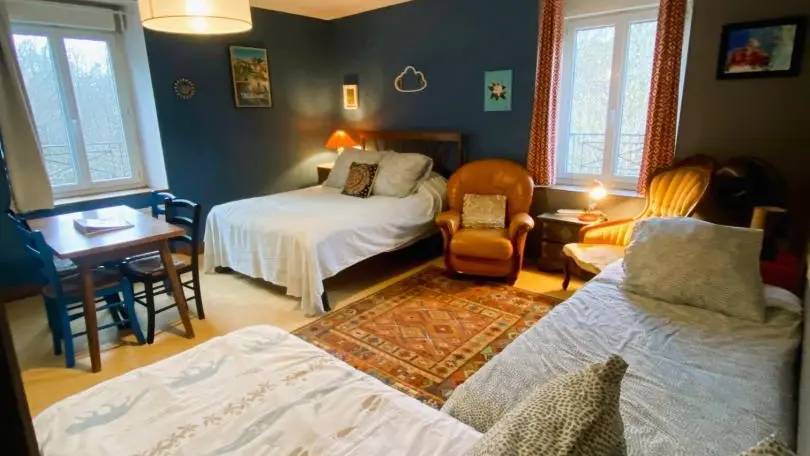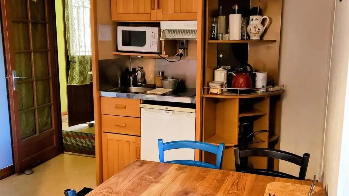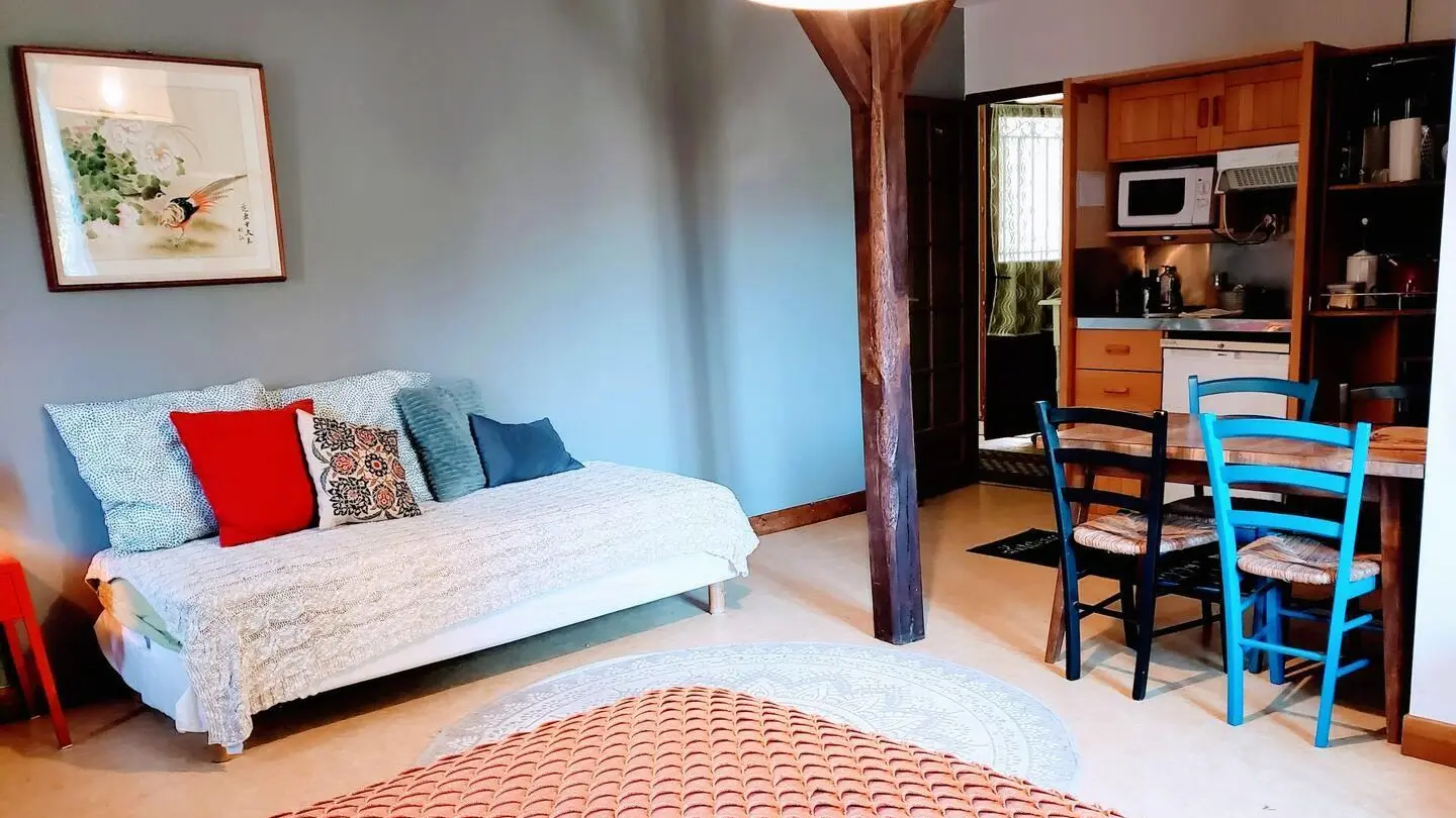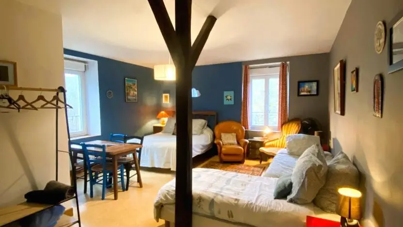 Located in the charming village of Treignac, this studio is perfect for up to 4 people. The building also houses the owner's home, ensuring a warm welcome and local advice to help you make the most of your stay. Although located near a country road, the studio enjoys a peaceful setting thanks to the river that flows just behind it, reminiscent of the building's past as a mill. In summer, you can even see canoes gliding peacefully along the water. A large garden is just a 3-4 minute walk behind the building, equipped with garden furniture and a hammock, perfect for relaxing.