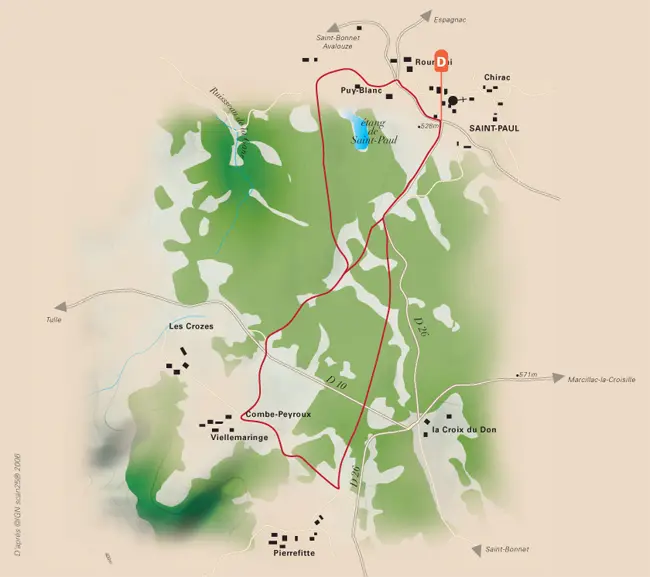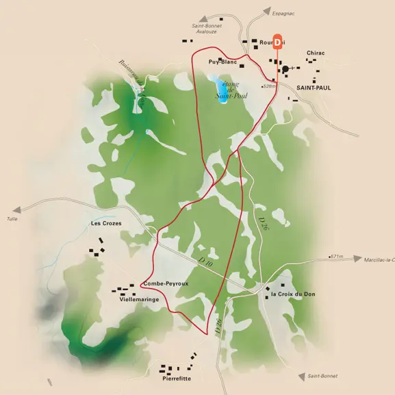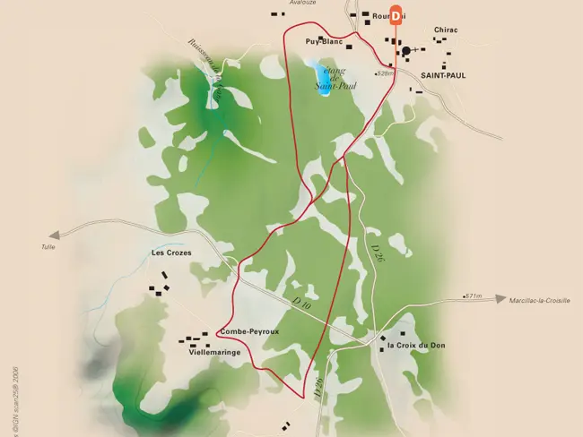 These wide paths and undergrowth in places will allow you to discover beautiful landscapes modulated by the Argentat fault and several elements of our small heritage: wells with a coping stone, a malted cross, a good Saint-Pierre fountain, a wooden mission cross and a beautiful Latin cross sculpted with a naive Christ in Vieillemaringe...