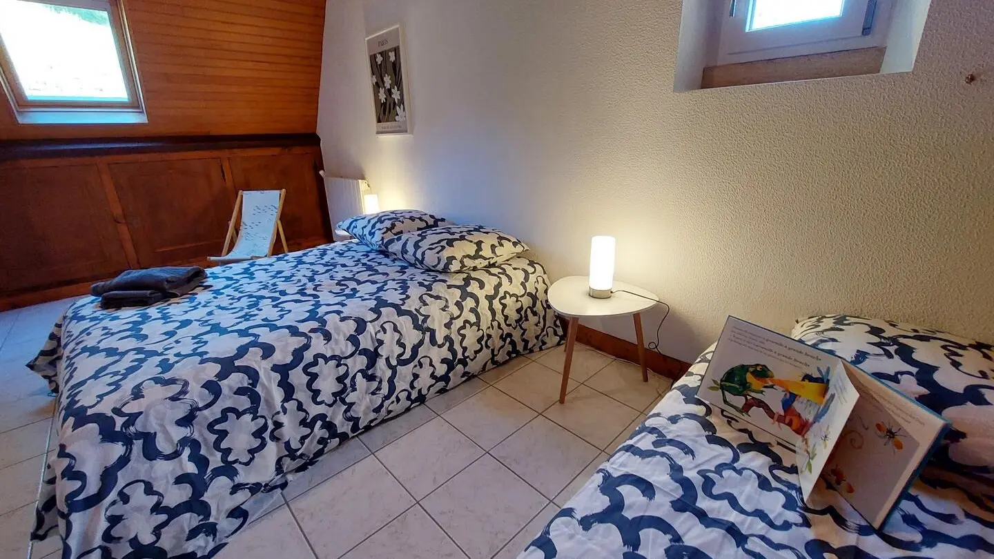 First floor: mezzanine with bookcase, 2 bedrooms (2 x 140 and 1 x 90) and bathroom with toilet.