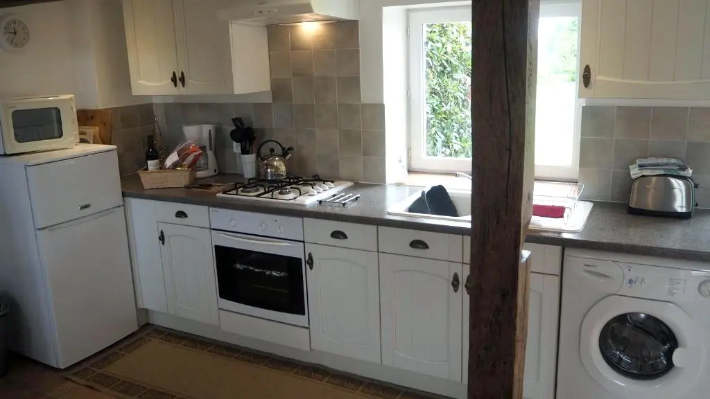 Integrated in a group of several accommodations superbly enhanced by a 6000 m² park full of flowers, this former farm building has been given a new lease on life, ready to welcome holidaymakers in search of space, authenticity and tranquility. The first floor of La Petite Porcherie is organized around a spacious and comfortable living room and a well equipped kitchen. The bedroom is located on the first floor as well as the shower room and the toilet. Everything is simple, functional and well laid out, designed for a carefree vacation.