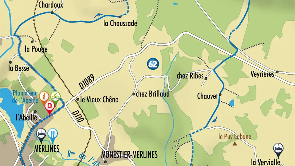 Espace VTT Haute-Corrèze, mountain bike circuit n°62 (17 km) from the tourist office in Merlines. With more than 1000 kilometres of signposted circuits starting from 17 communes, the Espace VTT Haute-Corrèze is the largest FFCT labelled network in France. The 50 circuits, which are either family-friendly or reserved for experienced riders, range in length from 4 to 51 km with gradients from 10 to over 1000 metres. Breathtaking landscapes, views of the Monts d'Auvergne and Sancy, detours through the major natural tourist sites of the Plateau de Millevaches: the Longeyroux and Négarioux peat bogs, the Chavanon and Diège gorges, etc. Links between the circuits allow you to ride stages with different starting and finishing points Itineraries over several days are possible with accommodation solutions nearby (campsites, gîtes, bed and breakfast, etc.).