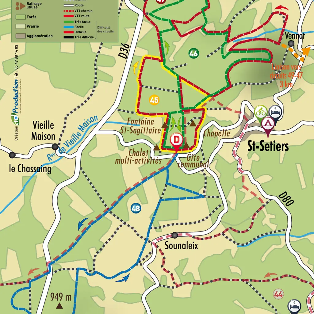 Espace VTT Haute-Corrèze, mountain bike circuit n°48 (7 km) from Saint-Setiers. With more than 1,000 kilometres of signposted circuits starting from 17 communes, the Espace VTT Haute-Corrèze is the largest FFCT labelled network in France. The 50 circuits, which are either family-friendly or reserved for experienced riders, range in length from 4 to 51 km with gradients from 10 to over 1000 metres. Breathtaking landscapes, views of the Monts d'Auvergne and Sancy, detours through the major natural tourist sites of the Plateau de Millevaches: the Longeyroux and Négarioux peat bogs, the Chavanon and Diège gorges, etc. Links between the circuits allow you to ride stages with different starting and finishing points Itineraries over several days are possible with accommodation solutions nearby (campsites, gîtes, bed and breakfast, holiday villages, etc.).