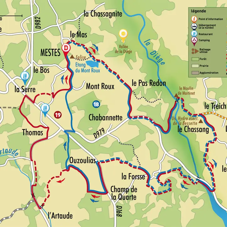 Espace VTT Haute-Corrèze, mountain bike circuit n°18 (13 km) from the church of Mestes. With more than 1,000 kilometres of signposted circuits starting from 17 communes, the Espace VTT Haute-Corrèze is the largest FFCT labelled network in France. The 50 circuits, which are either family-friendly or reserved for experienced riders, range in length from 4 to 51 km with gradients from 10 to over 1000 metres. Breathtaking landscapes, views of the Monts d'Auvergne and Sancy, detours through the major natural tourist sites of the Plateau de Millevaches: the Longeyroux and Négarioux peat bogs, the Chavanon and Diège gorges, etc. Links between the circuits allow you to ride stages with different starting and finishing points Itineraries over several days are possible with accommodation solutions nearby (campsites, gîtes, bed and breakfast, etc.).